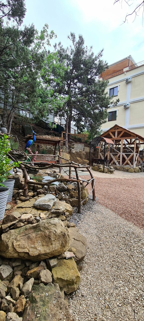 Отдыхали в августе 2022 года с семьёй. Только положительные эмоции, хозяин очень гостеприимный,номер чистейший,есть всё даже ложка для убови.Куханная утварь вся,какая пожелаешь.Фен ,утюг, гладильная доска +стиральная машина на этаже.Вид с верхних террас прекрасный .До моря минут десять по тенистому парку.Вообщем респект и уважение.