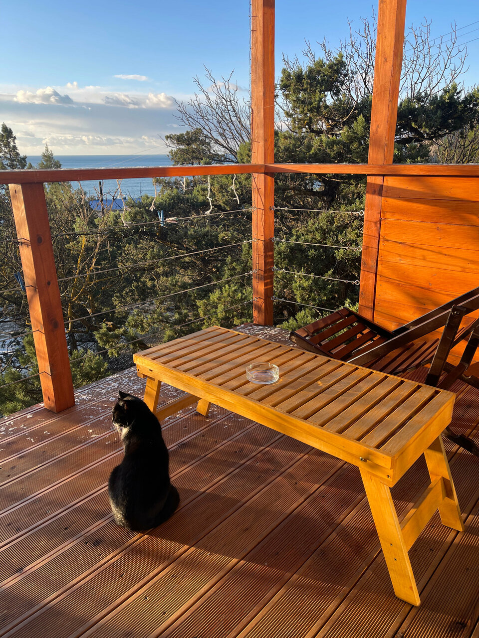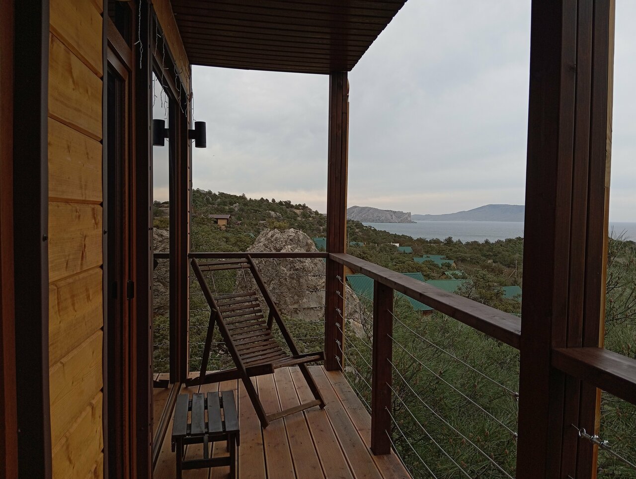 Хорошее место для отдыха с умопомрачительными видами, тёплый бассейн. На территории мангальные зоны общего пользования. Возле домика качели и стол со скамейками, очень удобно завтракать и ужинать на свежем воздухе. Много уютных уединенных мест на территории. К домику на ужин прибегают лисы. Неприятно удивили некоторые вещи: лейка в душевой кабине давно требует замены, сильно забита налетом, вода еле-еле бежит; в кухонной зоне нет никаких полотенец; одна сторона кровати ужасно скрипела при малейшем движении. Также возникли сомнения в чистоте халатов — пояс был связан в узел, рукава закатаны.