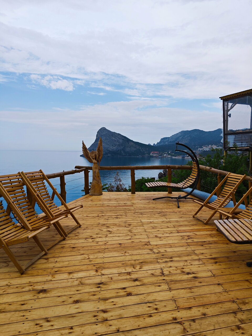 Отель выезжает именно за счет природы. На ресепшн работают дети, которым еще и 18ти нет. Соответственно ни о каком профессионализме речи нет. У нас был третий номер в Горыныче, за 16 тыс. рублей в сутки. Две спальни, кухня, большой балкон с видом на море. Удобный подъезд и подход. Но наполнение на 3 с минусом. Матрасы давно пора выбросить, белье — синтетика. Смена белья раз в 5 дней, за 8 ночей, белье так и не сменили. Номер грязный. Не хватает шкафов или хотя бы вешалок. В каждой комнате кондиционер, это плюс, но внешние блоки прикручены на внешнюю сторону домика, поэтому вибрирует весь домик, очень шумно. Отель отрезан от инфраструктуры. То есть либо ехать в новый свет, либо пойти в единственное кафе на территории. Начну с того, что что вид из кафе потрясающий. А вот с меню не все так гладко, в принципе выбор блюд нормальный и процентов 80 цен в меню тоже приемлемые. Но на некоторые позиции цены в 2-3 раза выше общепринятых. Например, барабуля 900 р. хотя в везде цена 350-400 р.