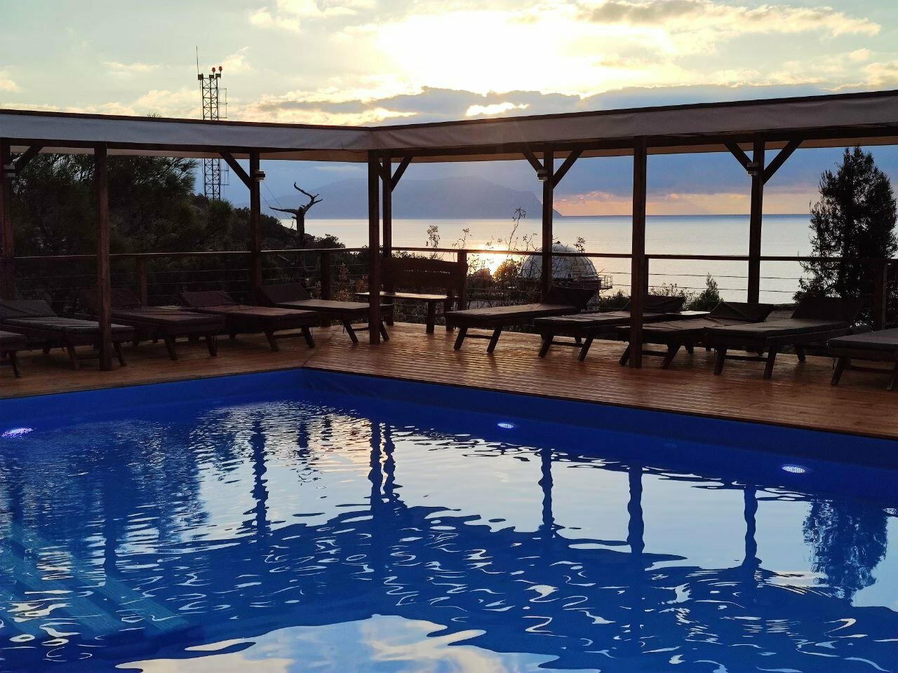Очень понравился отдых!супер место,красиво.бассейн общий с подогревом,сауна шикарна,остались довольны все и дети и взрослые,фото волшебные!