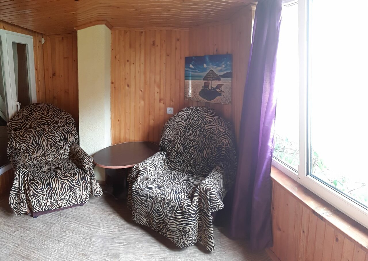 В номере чисто,уютно. Было креслице и столик внизу и вечером посидеть приятно) жили на первом этаже. Единственное для нас была очень маленькая кровать) помещались с трудомвроде оба стройные,но развалиться любим))) полутроспальная наверно,но больше туда не поставить т.к. прохода не останется тогда)) Все что нужно в номере было,даже кухня маленькая. Понравилась сама атмосфера, ощущение было что мы где-то не в Крыму даже,а заграницей)такие лесенки интересные,трехэтажные домики,все очень мило. Хозяйка приветливая,машину припарковать помогли. Сам Новый Свет оставил прекрасные воспоминания! Советую!