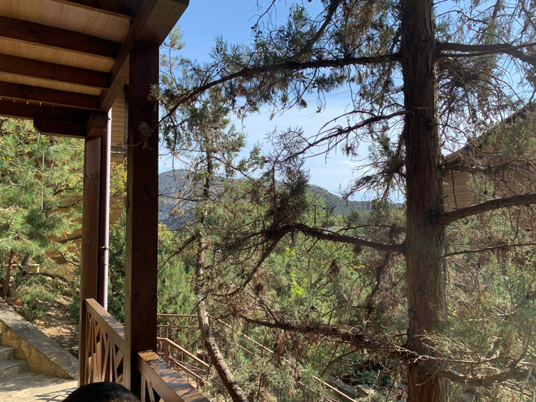 Отдыхали в начале августа 2022 г. Жили в двухкомнатном номере на втором этаже. Отель нам понравился. Спокойный, уютный и живописный. Номера удобные. Матрасы и подушки новые, комфортные, есть холодильник. Очень удобно расположены кондиционеры, к тому же они не блокируются при уходе из номера и блокировке другого электричества. Убирают каждый день, полотенца меняют через день. Для гостей отеля к пляжу есть удобная тропинка, идущая в тени деревьев. 3-4 минуты и вы на пляже! Так как корпуса отеля полностью деревянные, то существует несколько ограничений: в номере нет фена, утюга и чайника. Фен и чайник можно брать на ресепшн, но после использования необходимо вернуть. А погладить можно в определённой зоне в основном здании. Собственной парковки нет, но это, как я поняла, общая проблема Нового Света. Если нюансы с электроприборами вас не смущают, то рекомендую остановиться именно здесь!