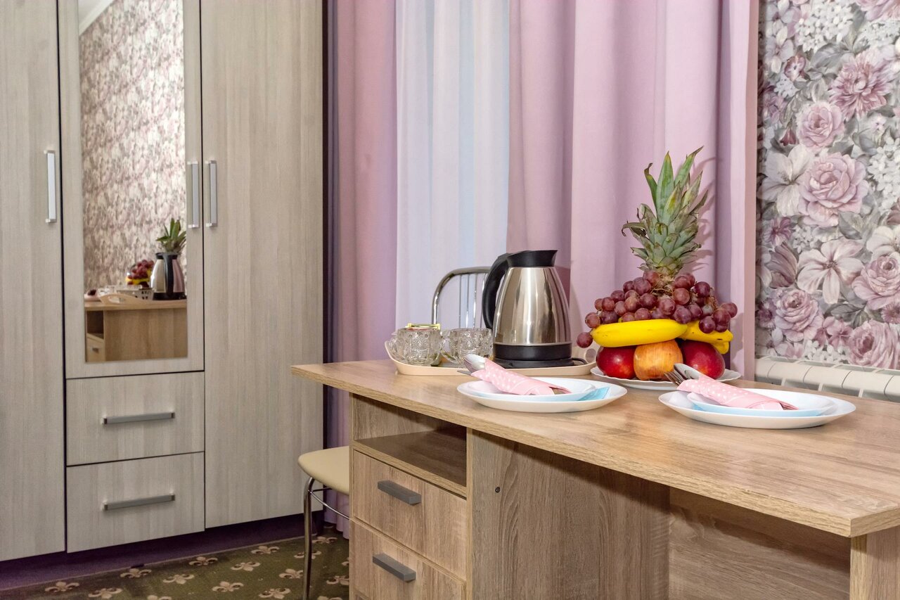 Прекрасный уютный номер для молодых пар. Романтика в каждом элементе интерьера нашего номера. Включены дополнительные удобства и оборудование (тапочки, халаты, средства гигиены, чайник, чайный набор.) Ежедневная уборка.