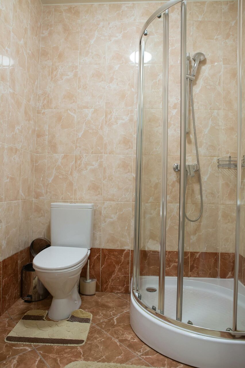 Душ не особо.контрастный,сам по себе живет.туалет и кухня общие.есть номера одиночные,где я и был,а есть койко место.по 4-8 мест.админы адекватные.