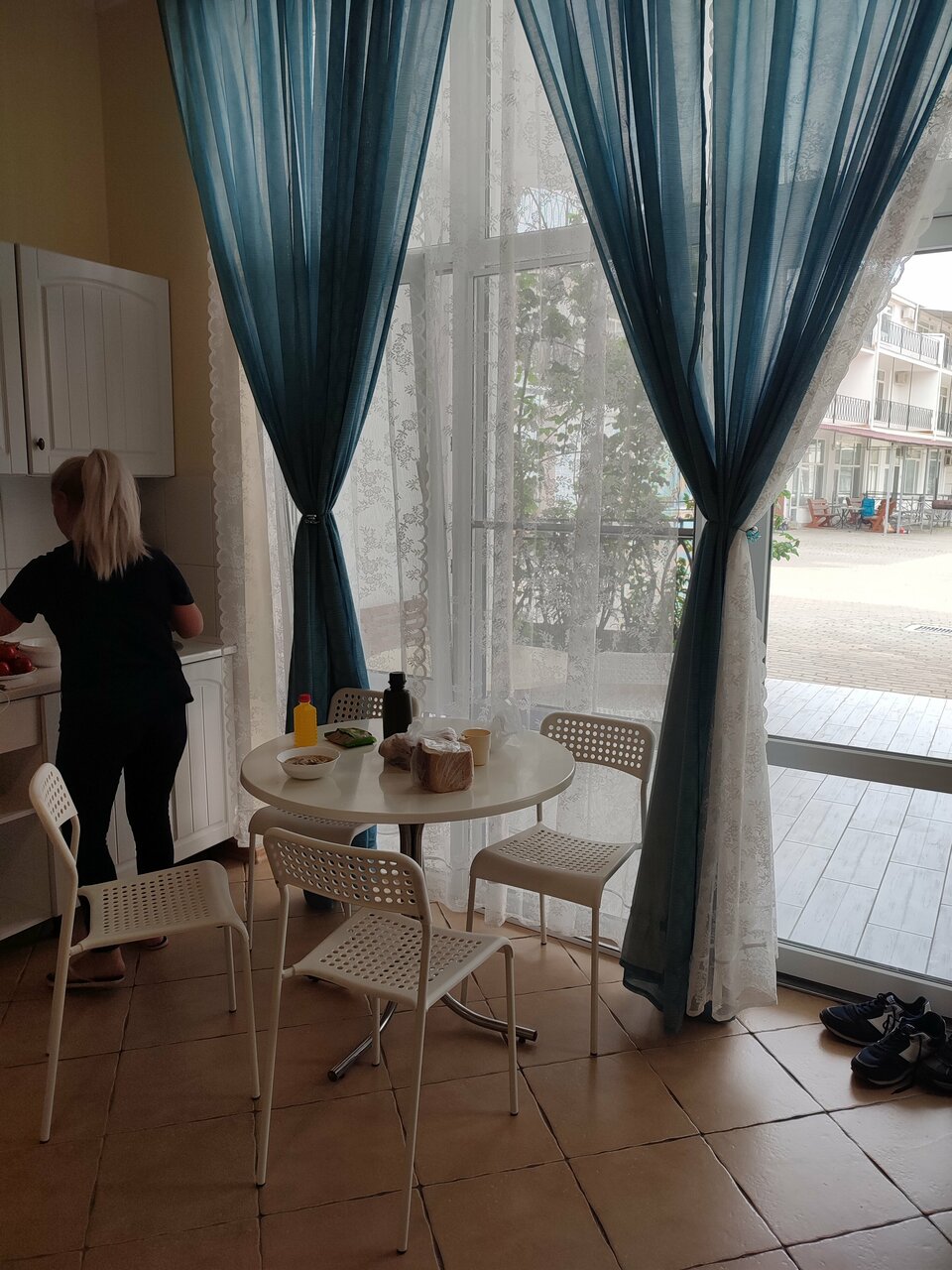 Очень рекомендуем. Потрясающая чистота номеров. Приветливая и обстоятельная хозяйка Валентина Александровна. В номере есть абсолютно все, любая посуда, что бы вы не захотели приготовить, там всепредусмотрено, любые принадлежности. Тарелочки, стаканчики, бокальчики, все подходит даже по цвету к интерьеру, никакого колхозного разнобоя. Постельное чистое новое. Нам нужна была детская кроватка, ее любезно предоставили, также новая, идеальная,с отличным постельным. Прожили неделю в полном комфорте, даже хотели продлить, но было уже забронировано, смогли добавить только одну ночь. Закрытая территория, везде плитка, масса детей. Ребенка почти не видели по вечерам, каталась и общалась, было чем заняться. Единственное неудобство именно для нас — дно с крупной галькой.