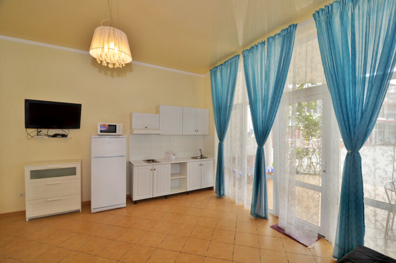 Однокомнатный Номер 4 с балконом находится на втором этаже. Площадь номера 24.6 м.квЦены Май 2000-2400Июнь 2800-3500Июль-август 4500Сентябрь 3500-2800Октябрь 2200