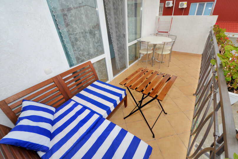 Двухкомнатный номер 5 с большой террасой и боковым видом на море находится на третьем этаже эллинга. Площадь номера 25 КВ.мЦеныМай 2500-3100Июнь 3700-5100Июль-август 6200Сентябрь 5100-3700Октябрь 2800