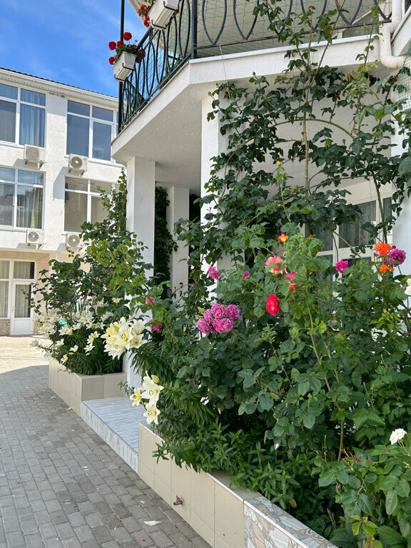 Хорошее, тихое место, нам очень понравилось! Номер для проживания супер! Отличный вариант — цена/качество. Бронировали заранее, по приезду заселились в номер на втором этаже. В номере просторно .чисто и уютно, Есть всё необходимое для комфортного проживания. До моря 50 метров, Для гостей есть свои шезлонги и навес от солнца. Заход в море галечный, чуть дальше песок. Вполне комфортно, водичка чистая. На территории есть магазинчик.