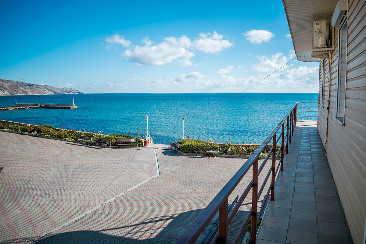 Охраняемая территория. Пляж крупная галька, у каждого номера закреплены шезлонги. Дежурят спасатели. Стоянка для машин на территории охраняемая, за забором бесплатная. Есть кафе, но я от них не в большом восторге. На территории есть магазин с кулинарией. Приезжает каждый день машина с овощами, фруктами, через день привозят ‘молочку’. Спокойный, без шумных дискотек отдых. Номера представлены различные, принадлежат разным хозяинам.
