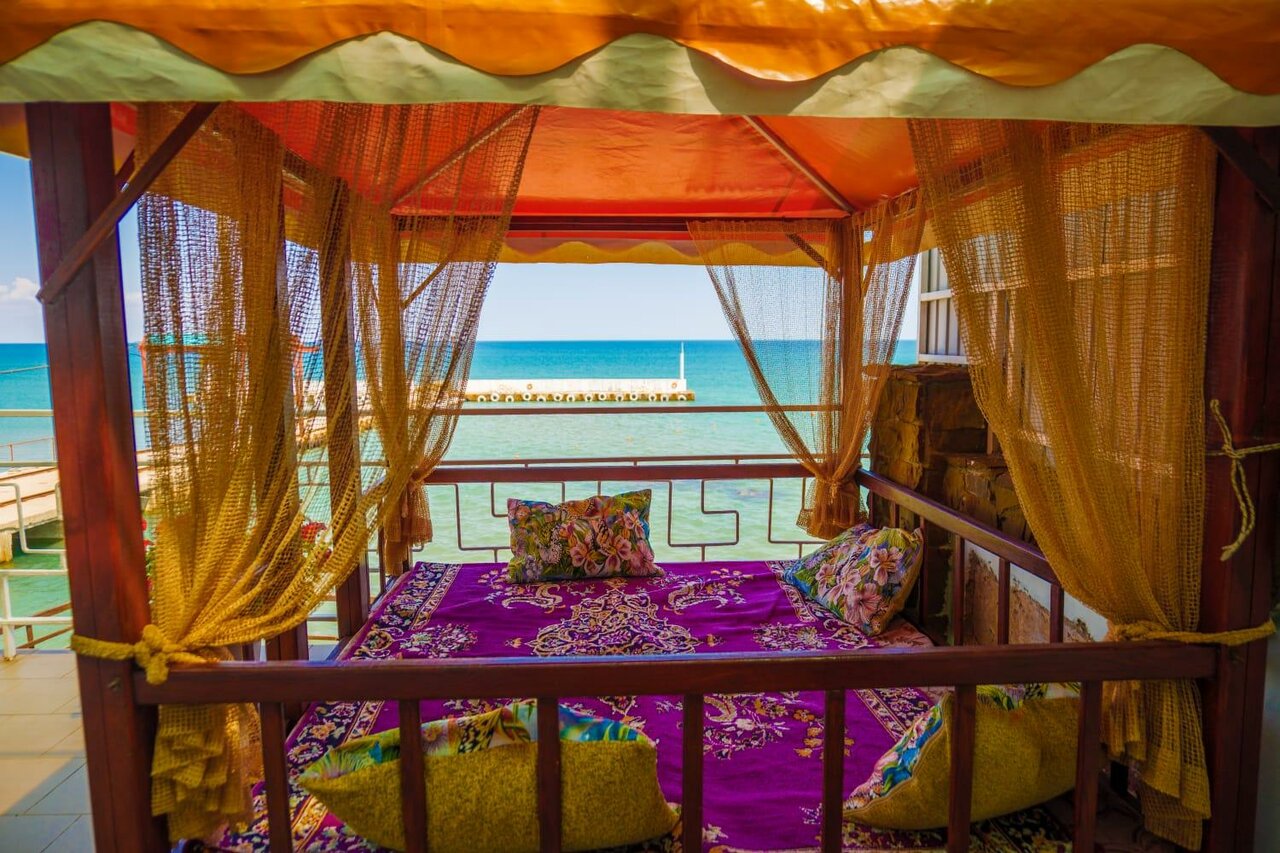 Никому не посоветую… Самому нравится ( а то все приедут, и места не останется ). Это место, где можно сутками слушать море, Либо на пляже., либо лёжа на лежанке в 20 метрах от моря. Каждое утро сразу выходишь на террасу, делаешь очередное фото рассвета, и на лежанку… Релакс…