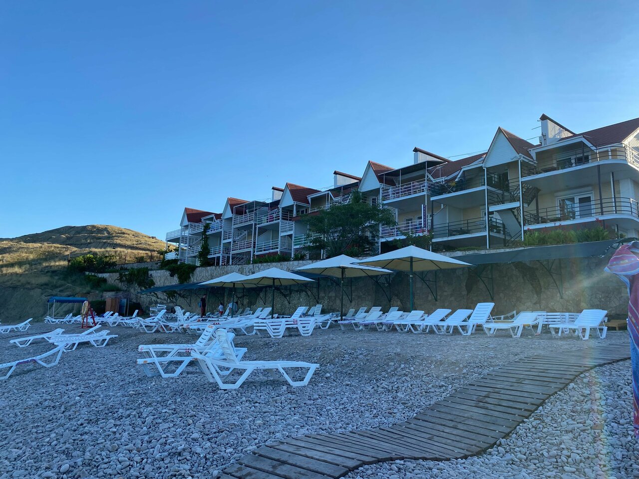 Хорошее место. Удобные номера, море в 35 шагов от номеров, пляж галька ,лежаки .