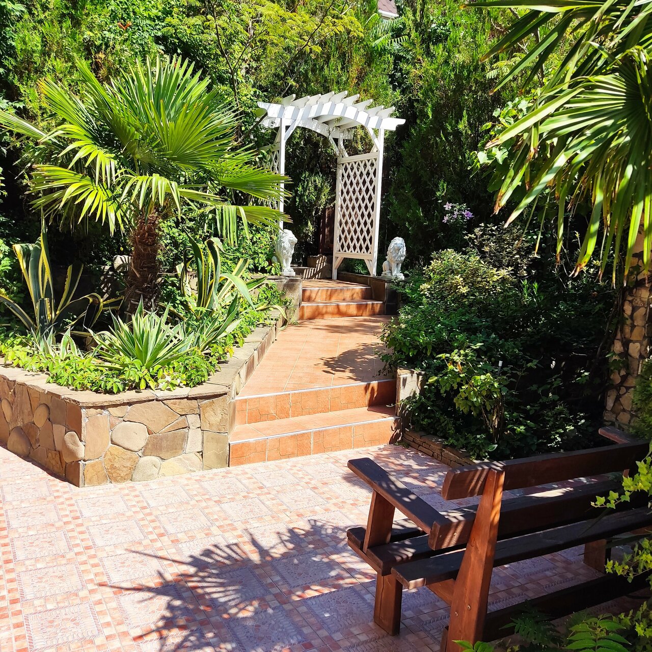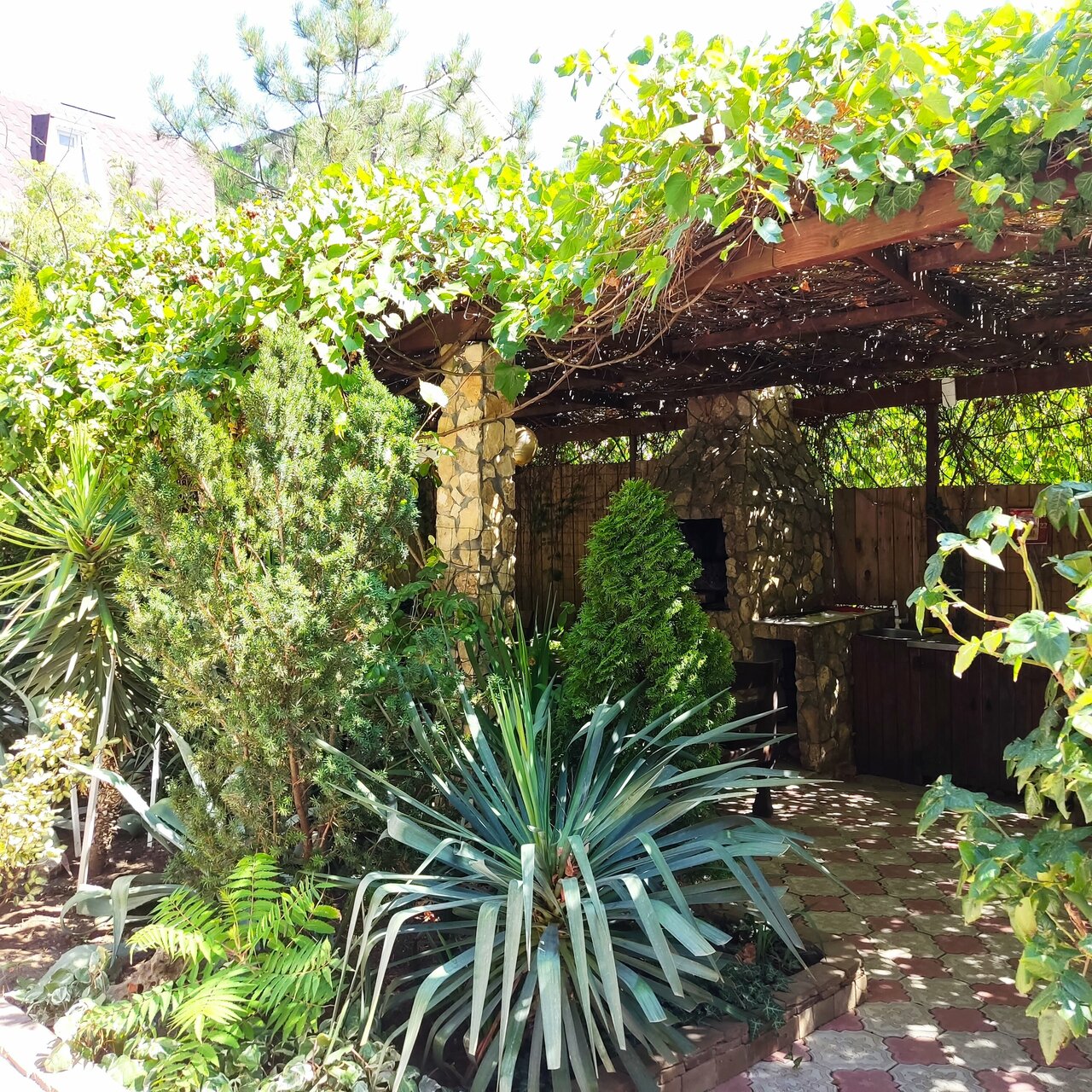 - Красивый сад с беседками.