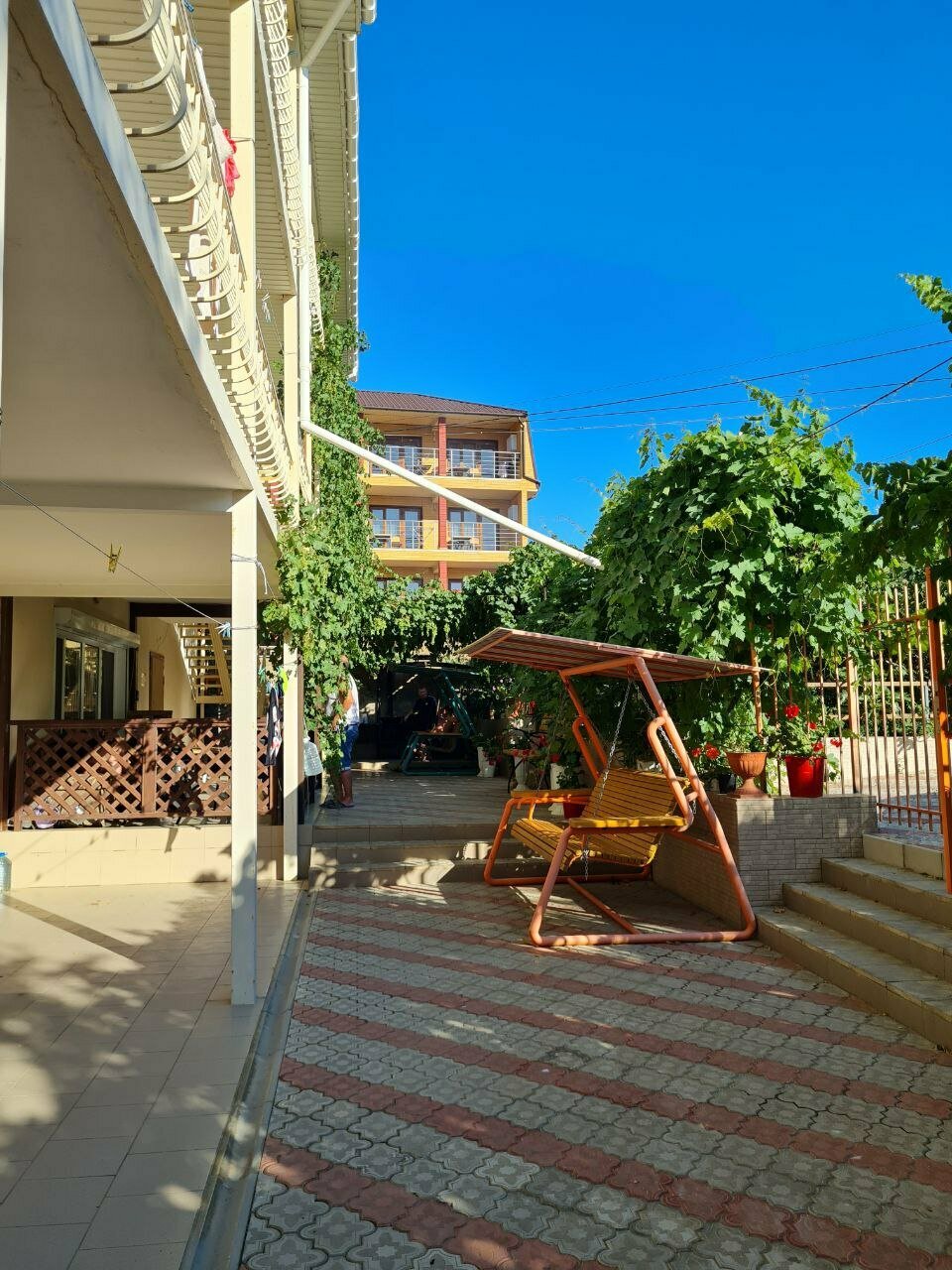 Гостевой дом вполне хороший. Отдыхали там два года подряд, в одном и том же номере. Две спальни, туалет, душевая кабинка и конечно же своя кухня. Во дворе можно и шашлычок сообразить. Да и сам дворик приятен. Море в пяти минутах. Ставлю твёрдую четвёрку.