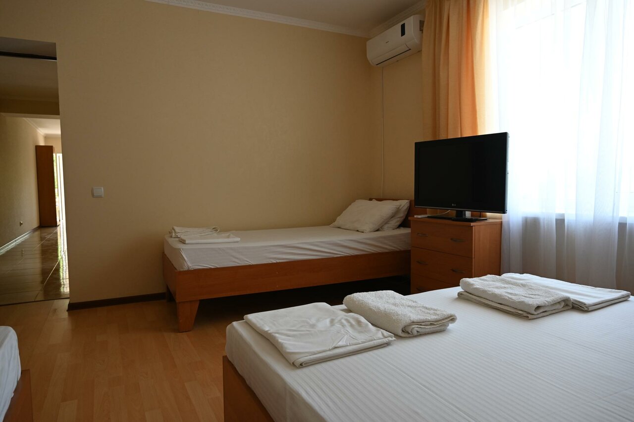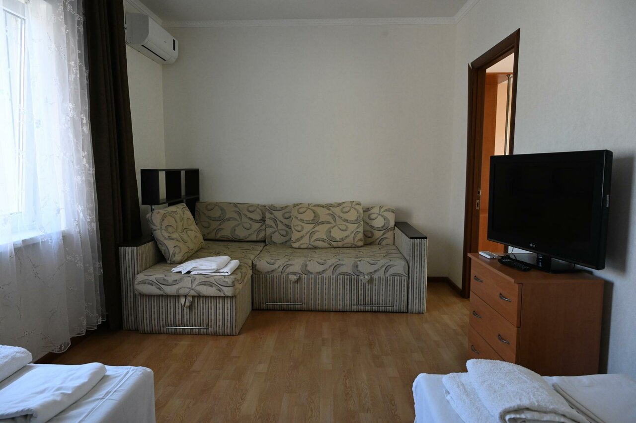 Отличное соотношение цена-качество. Номер, в котором есть все необходимое для комфортного проживания. Удобное расположение, близко к Агатовому и центральному пляжу.