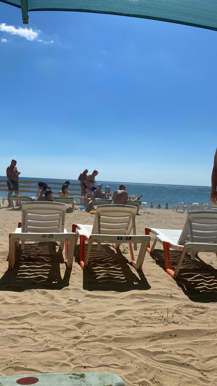 Море чистое, мелкое. Для детей самое то. Все в шаговой доступности. Есть магазинчик, столовая. Привозят фрукты, молочку, мясо. Эллинги в два три ряда. Есть зоны отдыха и мангалы для шашлыков
