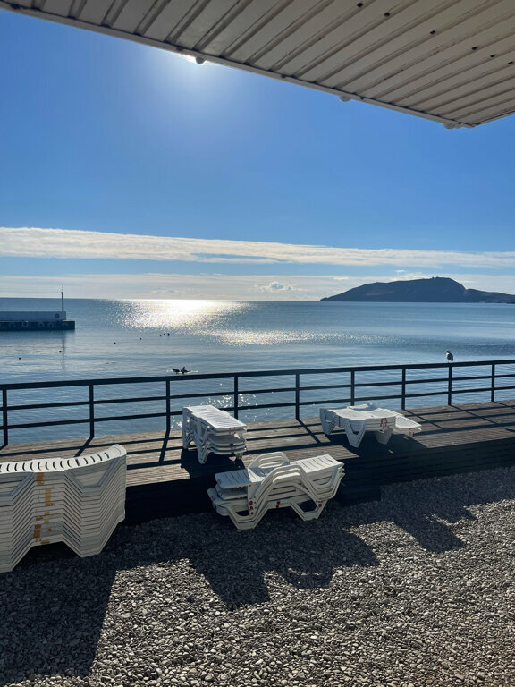 Интересная гостиница, пляж ближе некуда, территория чистая, все красиво. Номера тоже хорошие. Вокруг ближайшие развлечения(кроме моря) в Коктебеле- это 20 минут на машине. Поэтому лучше приезжать большой компанией, чтобы было не скучно.