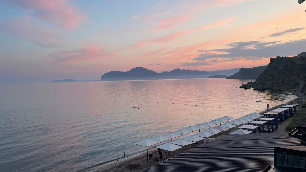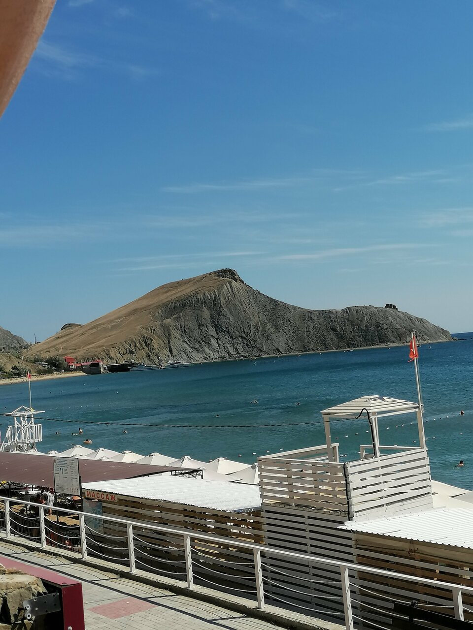 Пляж — смесь привезенной гальки и местной грязи. Сам гаражно-жилой комплекс- типичный представитель украинской эпохи: хаотичное нагромождение строений посредственного качества. Номер нам достался в весьма ушатаном состоянии. Контингент отдыхает кто во что горазд. И, как это часто бывает в Крыму, расположено это недоразумение в умопомрачительно красивом месте…