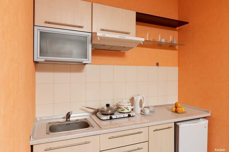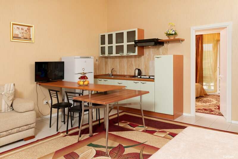 Вариант для гостей, которые предпочитают самостоятельно готовить во время отдыха. В номере есть кухня с электрической плитой и необходимый набор посуды.