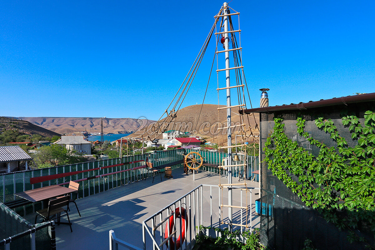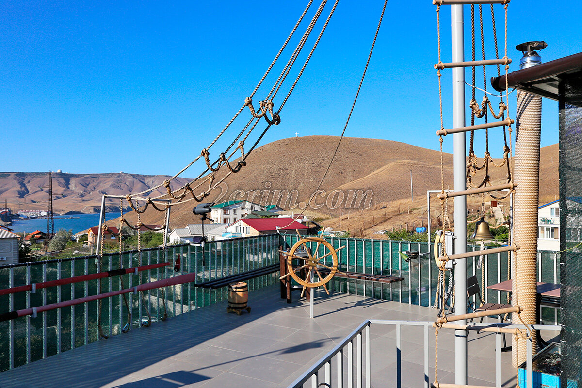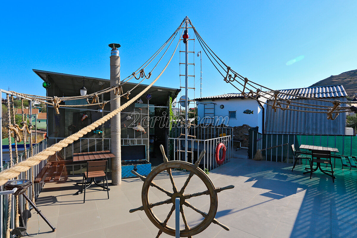 Хочется выразить огромную благодарность за организацию нашего отдыха хозяину Игорю и его гостеприимной хозяйке Татьяне!!!На ‘ кораблике ‘ всё продумано до мелочей, по-домашнему уютно и комфортно. Много интересных и занимательные предложений для экскурсий по окрестностям.В небольших номерах есть телевизор, кондиционер, небольшая кухня, ванная комната. Оборудована смотровая площадка в морском стиле, для проведения фотосессий. Много зон отдыха для небольших компаний. Для детей есть игровые комнаты.