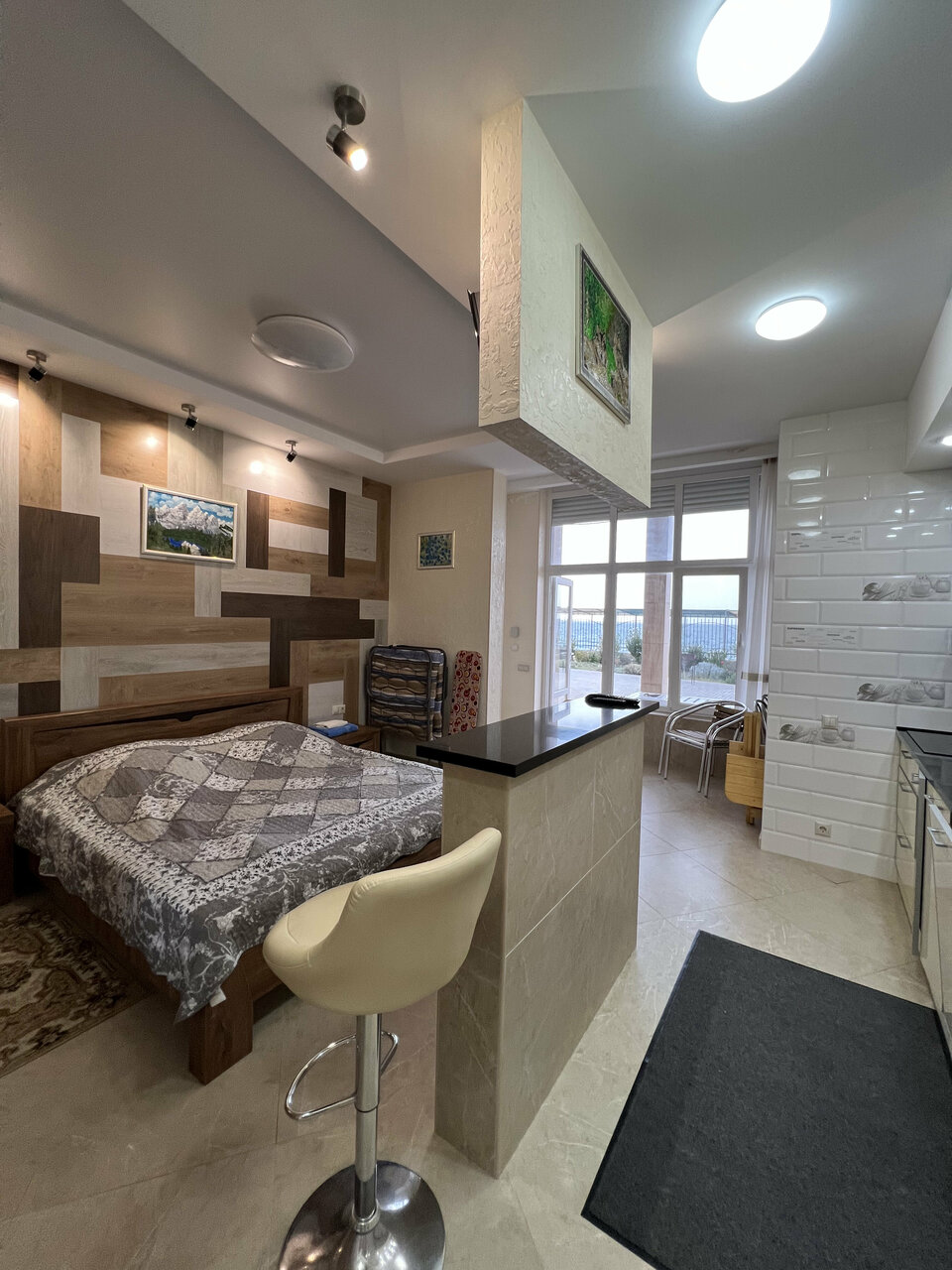 Аренда уютной и стильной студии на 1 этаже эллинга на 1 линии. Имеется веранда, кухня, душ, санузел, двухместная кровать, барная стойка, телевизор, кондиционер.