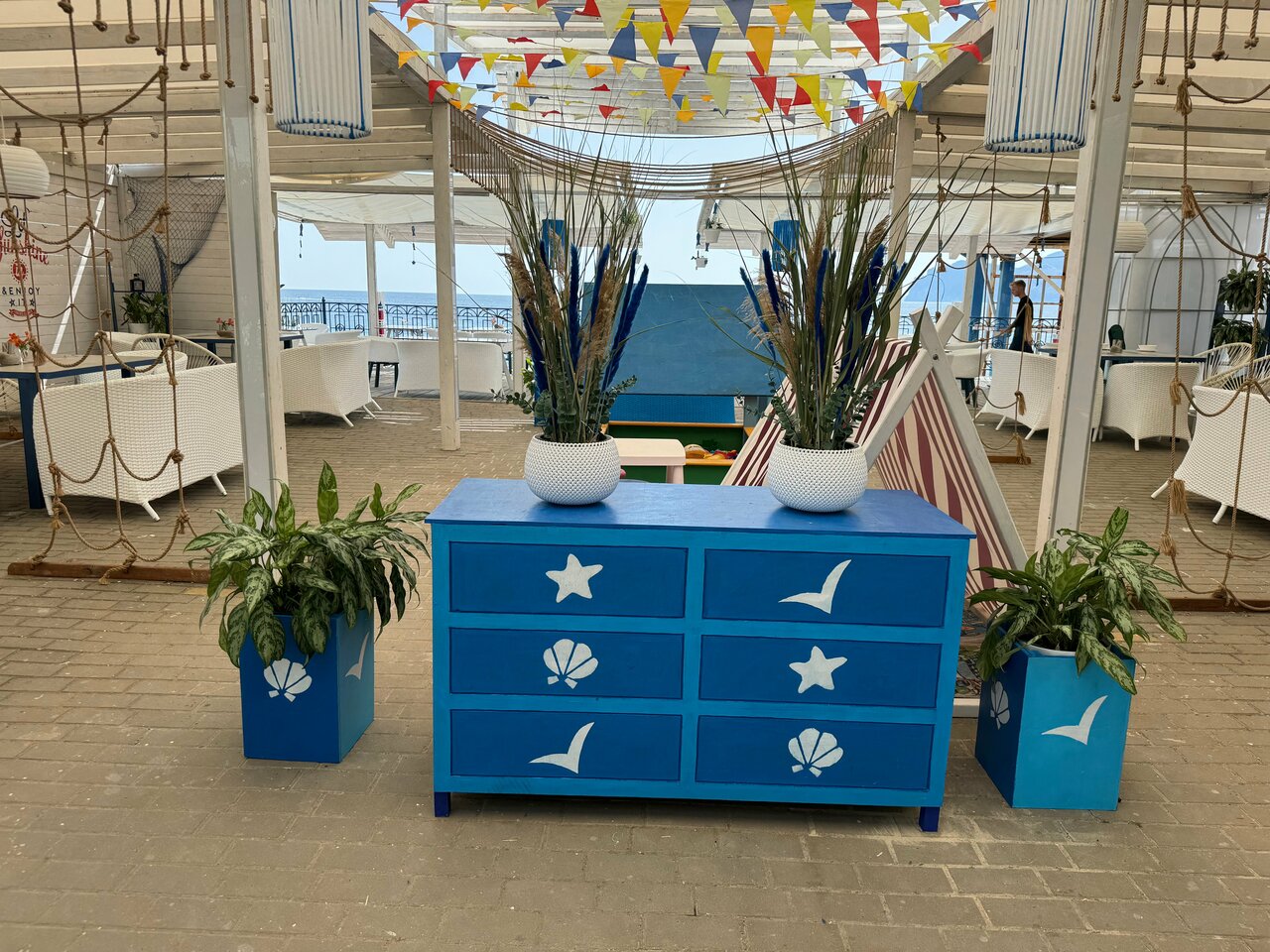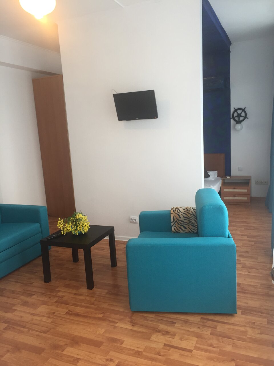 Единственный плюс гостиницы-ее расположение! Холодильник и кондиционер не работали ( обратились к администрации- на следующий день все поремонтировали, но мы там отдыхали 3 дня и полтора из них без кондиционера и холодильника), в душе напора нет, вода льётся самопроизвольно: когда хочет холодная, когда хочет тёплая! Ресторан: задумка/ расположение крутые, кухня — отвратительная!!!!! Вкусная только жареная барабулька (наверно ее сложно испортить). Шашлыки и овощи на гриле горелые принесли. В салатах жухлые/порченые листья, о заправках для салата вообще не слышали!