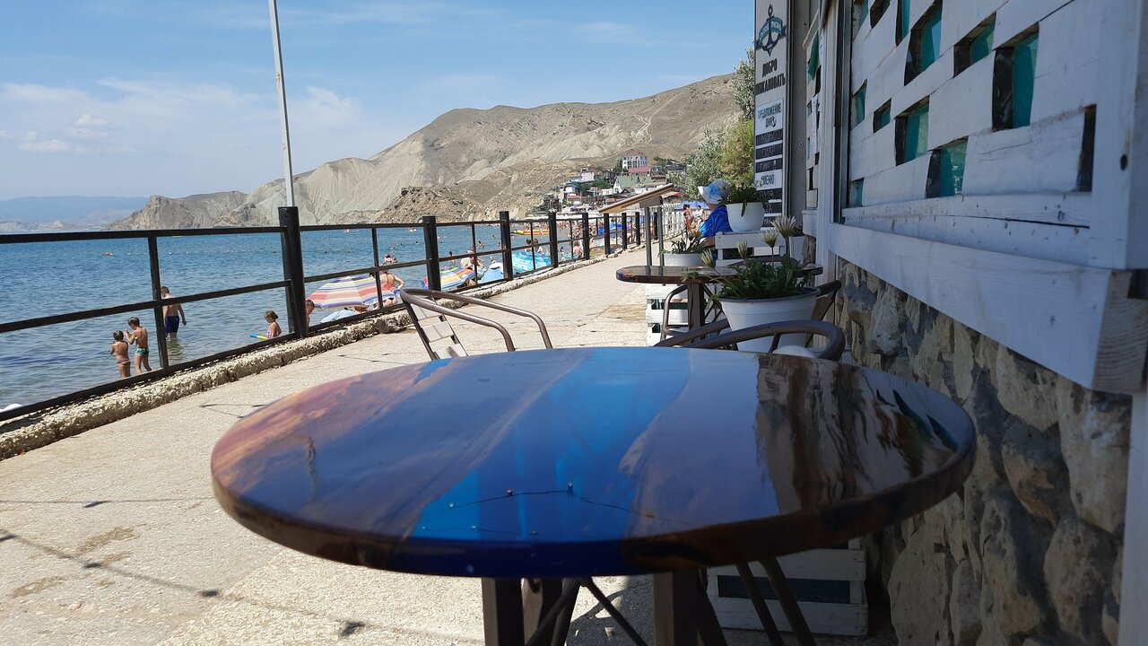 Заехали в Орджоникидзе посмотреть поселок, перекусили в этом кафе. Готовят вкусно, обслуживают хорошо, цены приемлемые. Буду рядом — заеду пообедать с видом на море