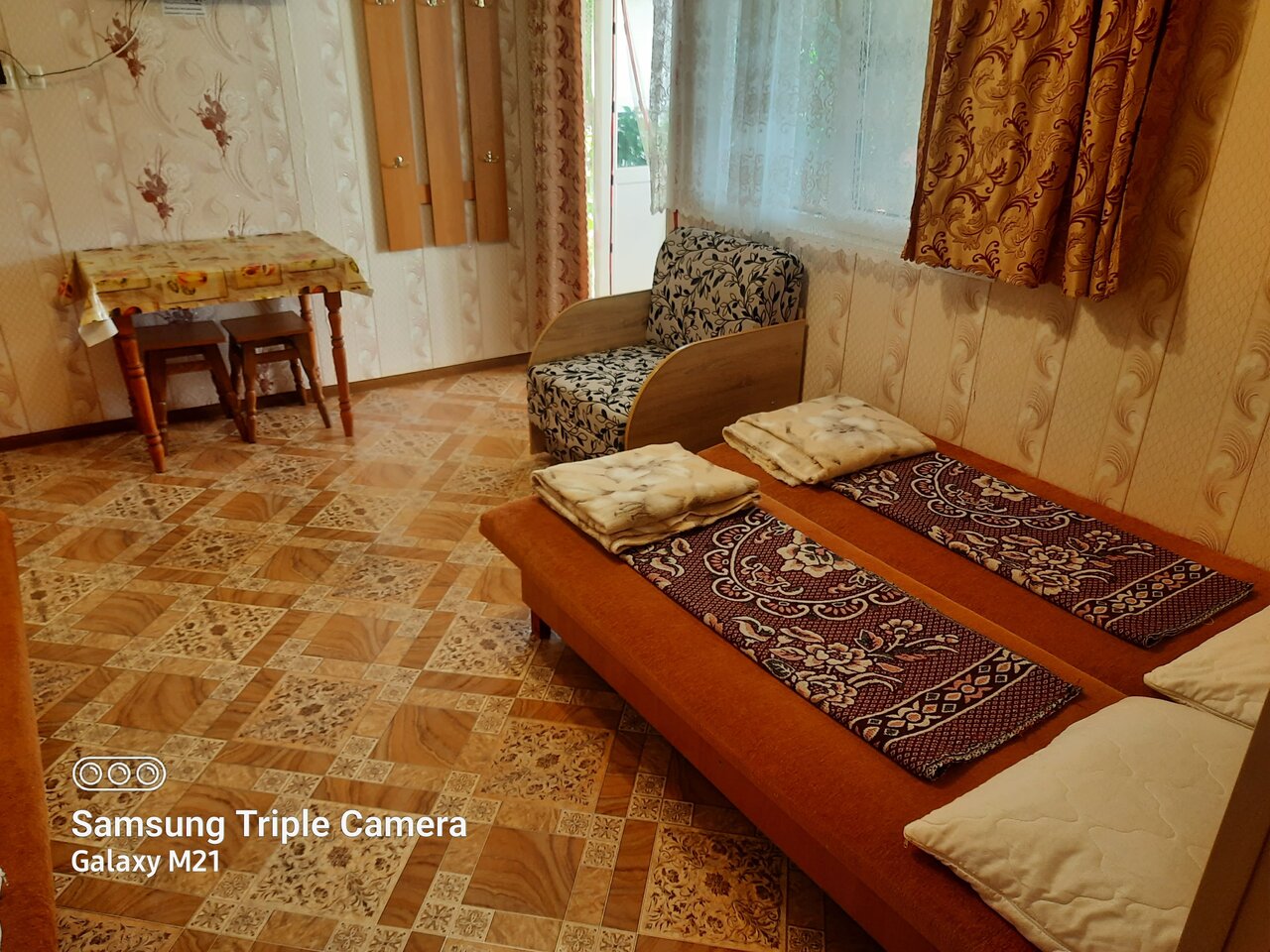 прекрасное место были здесь с семьёй в отпуске — летом 2021 хозяева вежливые, внимательные в номерах чисто, опрятно, приносят сменный комплект постельного белья и полотенца есть маленькая кухня, холодильник, плита — все работает небольшое количество посуды ванна, туалет — тоже все хорошо так же, перед номером есть небольшая беседка, где можно пожарить шашлыки море — в минутах 10 ходьбы в 3-5 минутах автобусная остановка там же много продуктовых магазинов со средними ценами большой выбор сувениров и пляжных аксессуаров на небольшом рыночке p.s. на фото два номера