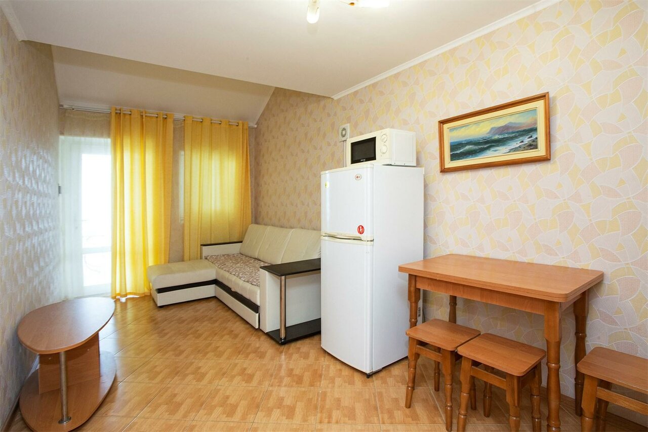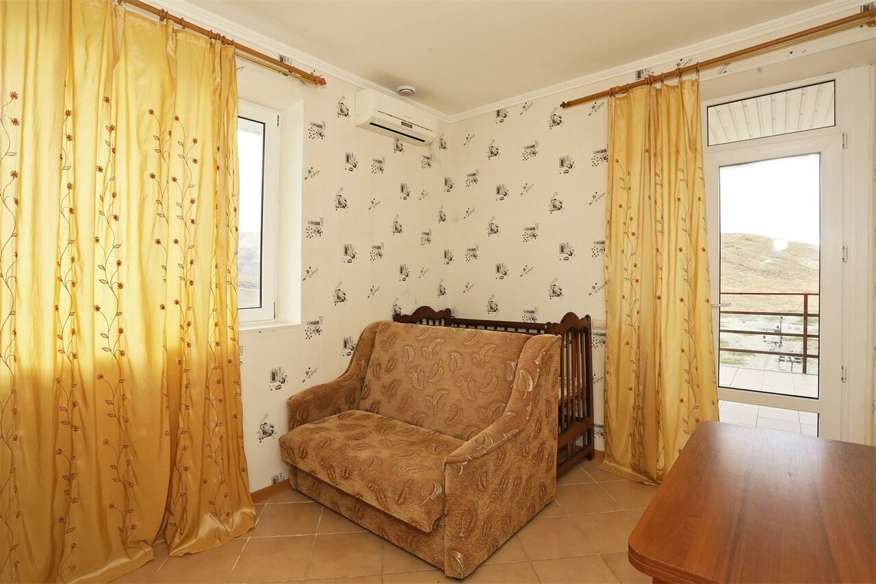 Комфортный двухкомнатный номер для семьи или компании с красивым видом на горы. Удачное расположение для любителей тишины и покоя. Вид на горы позволяет наслаждаться невероятными крымскими закатами в перемешку со свежим морским воздухом.
