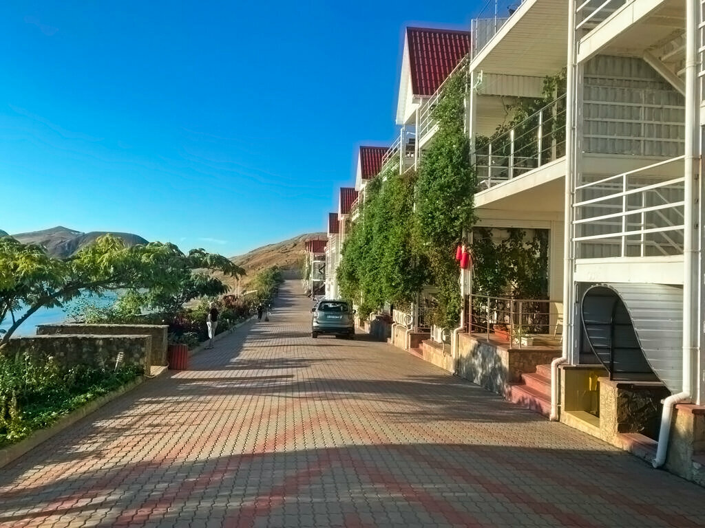 Хороший недорогой отдых. Рядом с морем. До моря 50 метров. Нет никого посторонних. На территории есть 2 кафэ. И столовая. До Феодосии 20 минут на машине. До Коктебеля 15 минут. Номера конечно не супер элитные. Но цена качества пойдёт. Вай фай ужас. Как в СССР.