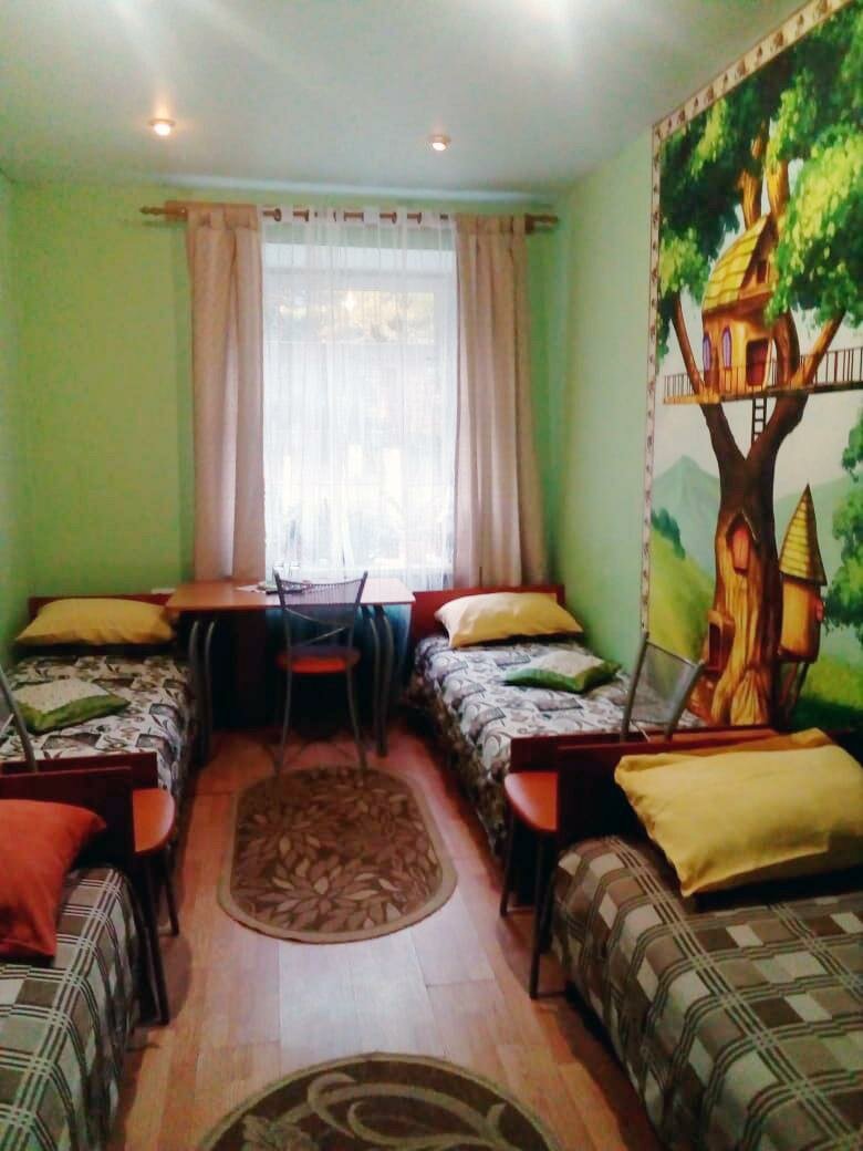 Гостиница сделана из квартиры. 5-6 номеров различного размера ( от одноместного до 3-х местного). Туалет общий в холле. ( Есть женский есть мужской). Цена адекватная. Рядом есть магазины, кафе. Интернет слабый, проще пользоваться своим. В номере есть чайник, холодильник общий у администратора. В принципе для тех кто сюда приезжает по работе вариант не самый худший. Всё чисто, ежедневная уборка.