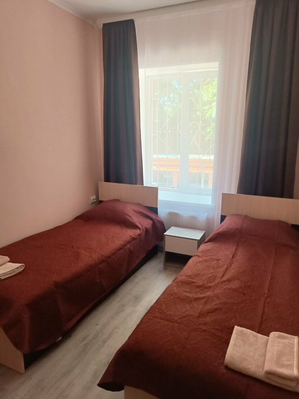 Номер рассчитан на 1-2 персоны, дополнительное спальное место не предусмотрено. В номере две односпальные кровати, душевая и туалет, TV.*Завтрак включен.