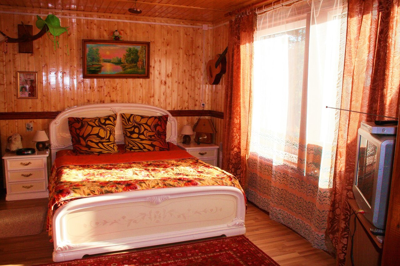 Самое главное в этом доме не обычное, для гостиниц, сам дом. Заходишь в настоящий деревенский дом, по среди дома русская печь. Отдых не то что в каменных домах, это 6адо попробовать если кто не жил в деревянных домах. Из минуса-так как дом поделён на комнаты , по прибытию соседей слышно как они ходят.