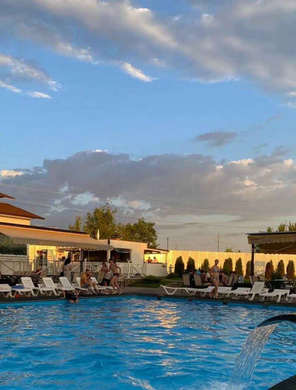 Отличное место для семейного отдыха, 2 бассейна детский и взрослый, много лежаков есть столики с навесом где можно перекусить. Также есть зона барбекю где можно самим пожарить шашлычок. Есть большое кафе с прекрасным обслуживанием и великолепной кухней!!! Очень понравилось, обязательно приедем сюда снова всей семьёй!!!