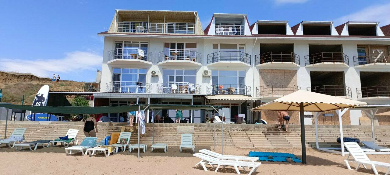 Прекрасное место, уютные номера прямо на берегу, ближе некуда. С балкона вид потрясающий, пляж с мелким песочком с ракушкой, пологий вход. Сам эллинг очень комфортный, спасибо хозяевам Ангелине и Вадиму, сделано все настолько скурпулезно, аккуратно, как для себя. В номере есть все, до таких мелочей как губка для посуды, тряпочка, швабра, и т.д., полный помплект посуды, причем все идеально чистое. Просто приятно было находиться в таких условиях. Также этот корпус единственный, у которого при выходе с пляжа есть душ для ног, это очень удобно. У остальных просто тазик стоит. В целом это место для тех, кто едет ради шикарного моря и уединения. С детьми просто идеальный вариант. Развлечений нет, но кому надо едут в Феодосию. Нам понравилось невероятно