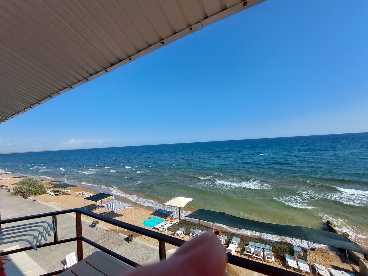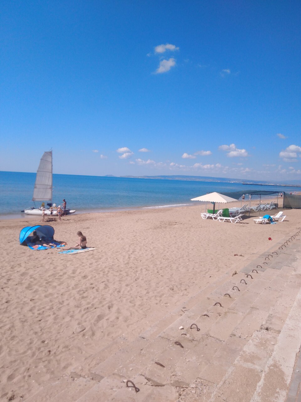 Отдых спокойный, пляж и территория закрытые, людей немного, атмосфера дружелюбная, чисто, вода есть) море в 15-20 метрах. Очень удобно. Уже не первый год проводим тут отпуск с семьёй.