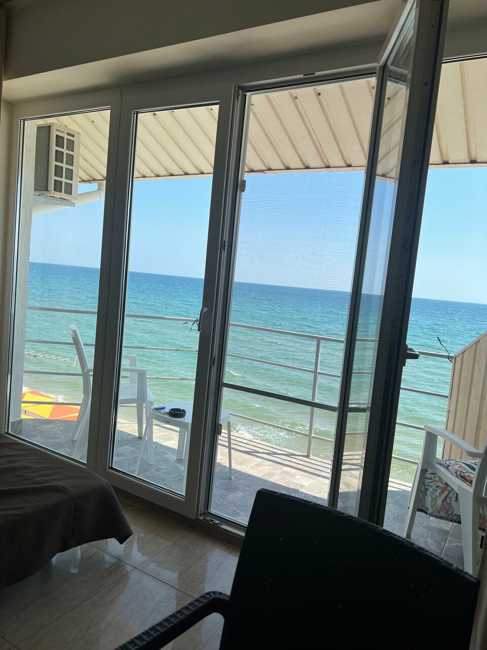 - Море у самых ног, золотой песок.; Номера соответствуют фото.; Есть кафе на территории.; Чистое море и пляж.; Вид на море или прохладные номера без солнца.
