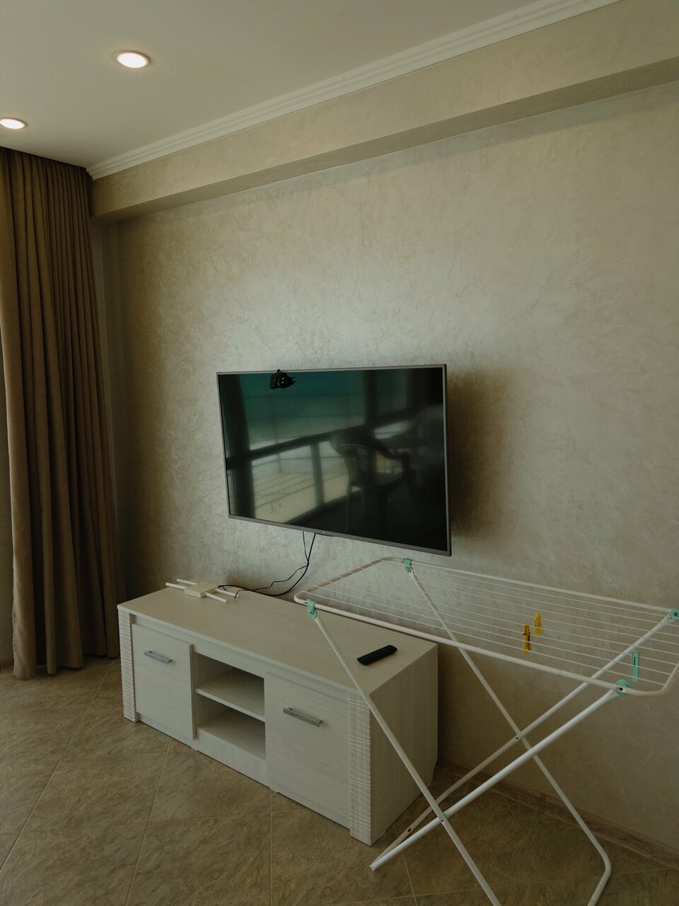 - Полноценная кухня с техникой (чайник, плита, холодильник, микроволновка).