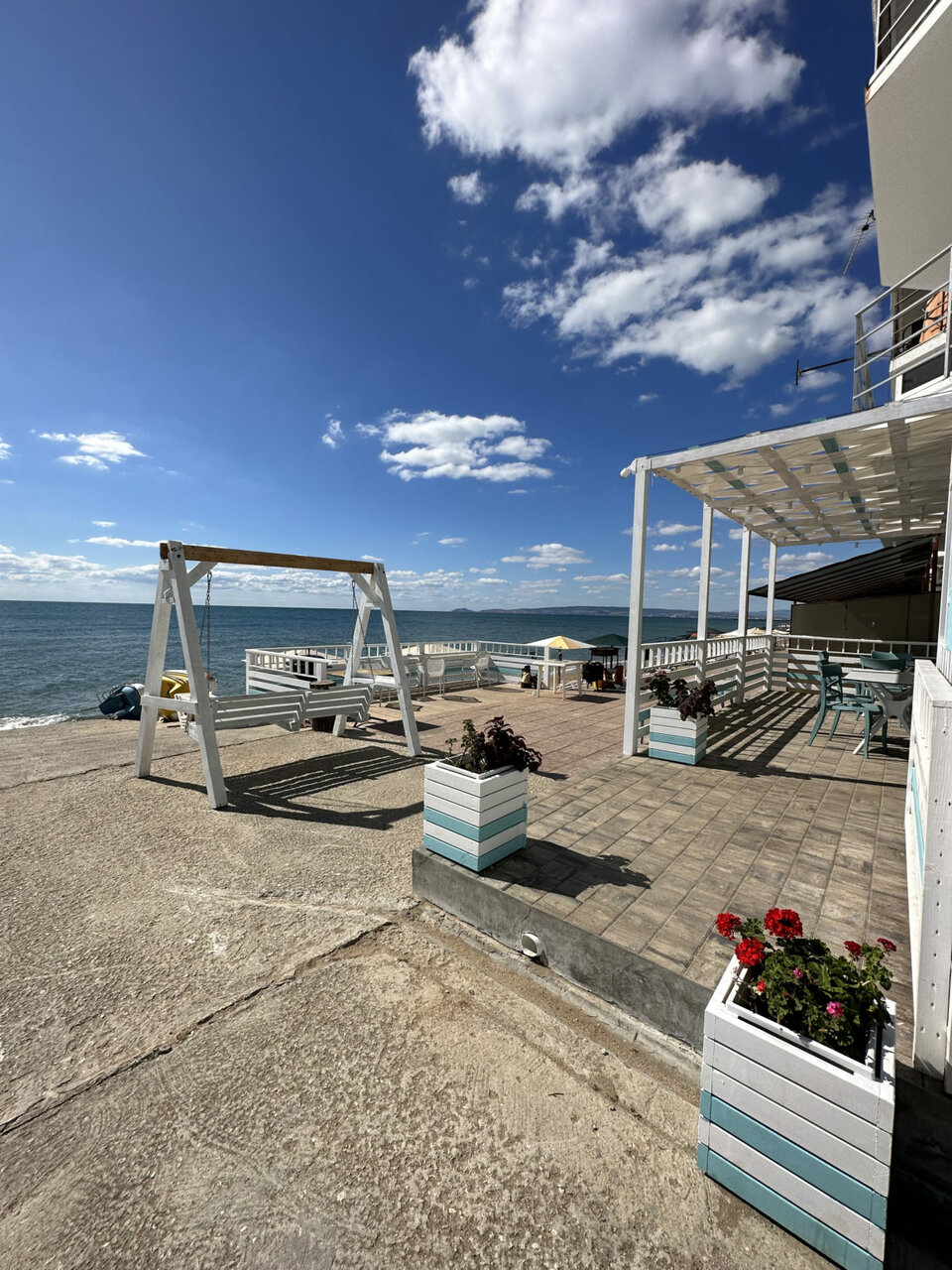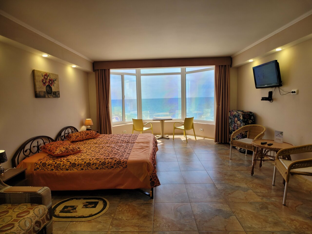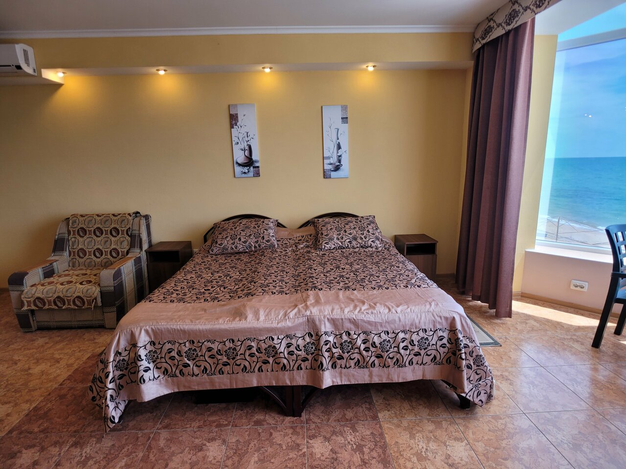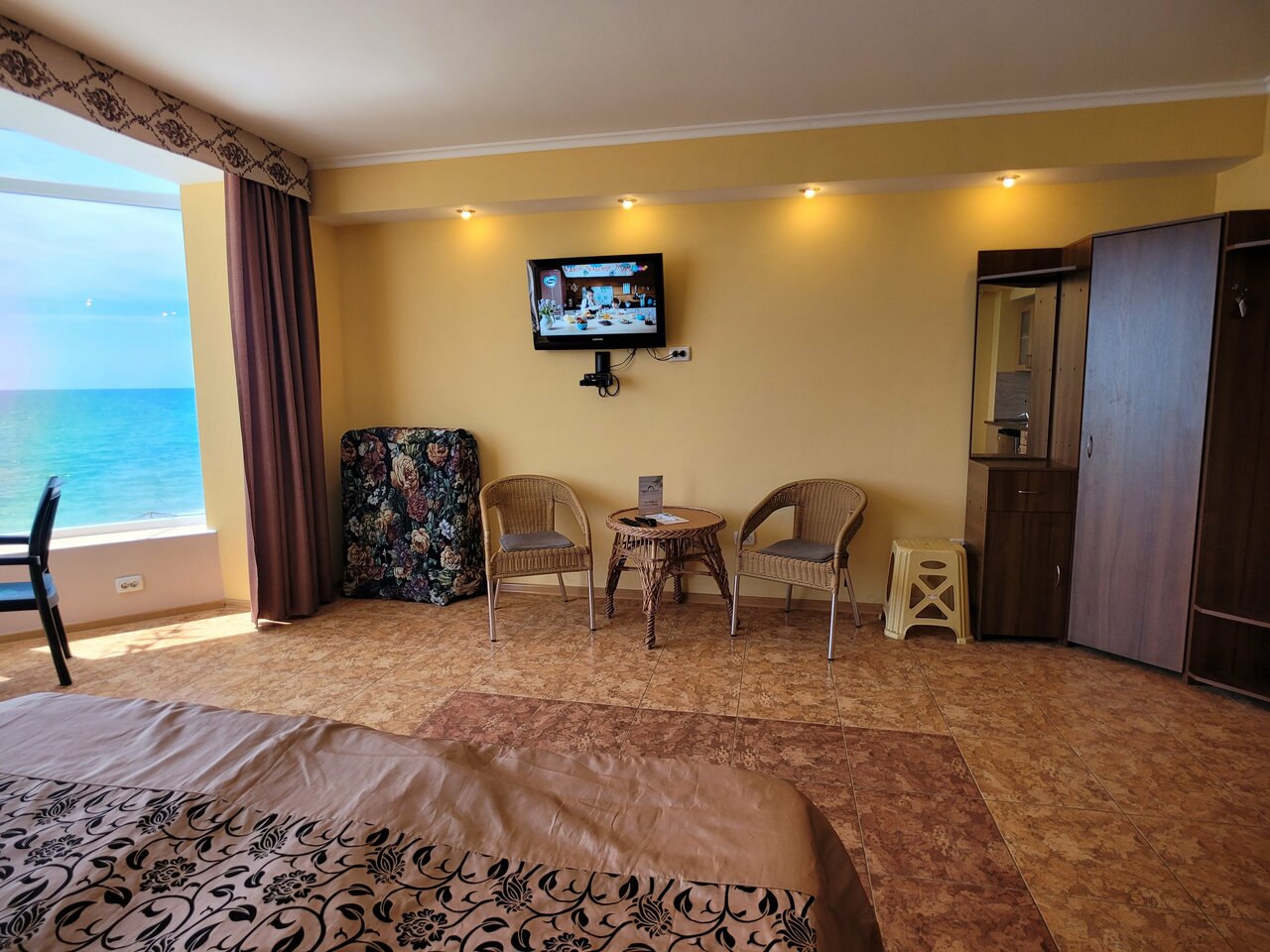 Снимали номер с видом на море, очень красиво и живописно, шикарные рассветы. Надеюсь шторм ничего не повредил.