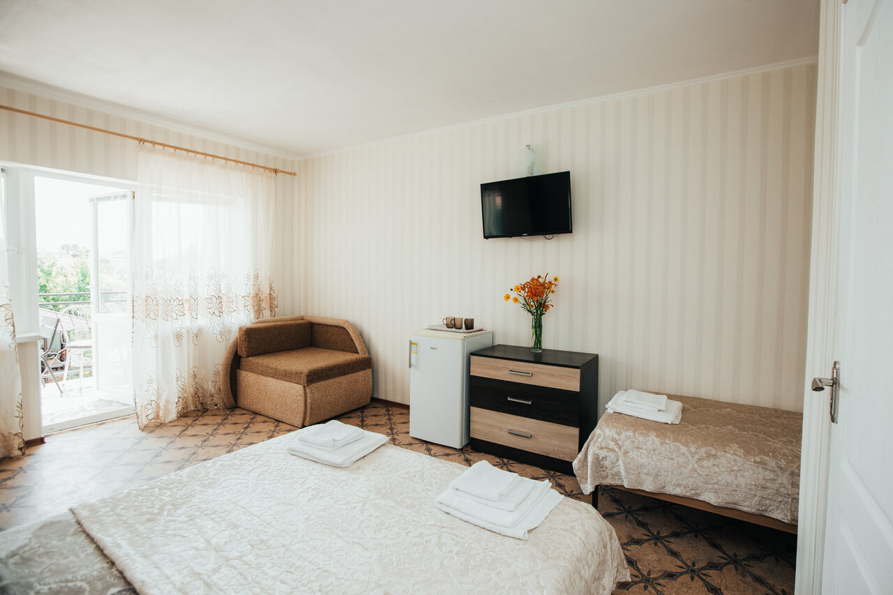 Приезжал сюда по совету тех, кто уже отдыхал здесь и все более чем понравилось. Большой двор на несколько парковочных мест, много растений и зелени. Есть кухня, а также беседка для шашлыка. Номера уютные и светлые. Все чисто, аккуратно и убрано. В номере есть душ с туалетом, телевизор, кондиционер, холодильник и вай фай. И конечно же балкончики с прекрасными видами на Чёрное море! Хозяева очень приветливые, добрые и отзывчивые! Всегда помогут и объяснят что и как. До моря примерно 10-15 минут ходьбы. Рядом есть достаточное количество магазинов и кафе, где можно вкусно и не дорого покушать. Однозначно рекомендую остановиться здесь для незабываемого и прекрасного отдыха!