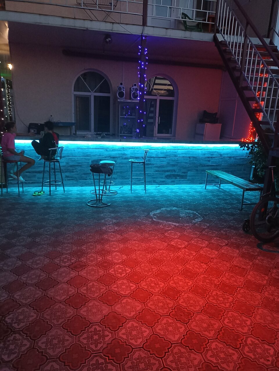 Снимали номер 9, комнатка на 3 человека, с ребенком, кондиционер есть-работает хорошо, чисто в туалете, душ выложен из плитки(без кабинок) что мне тоже очень понравилось, проветривается и сохнет влага быстро, шкаф имеется, телевизор, вай фай… Очень хороший хозяин Эльбрус, вечером включает радио негромко, во дворе стоят качели(где можно даже лечь) есть мангальная зона, большой стол на улице, большая общая кухня, 3 мойки и 3 плиты, есть парковка для машины. Нам очень понравилось