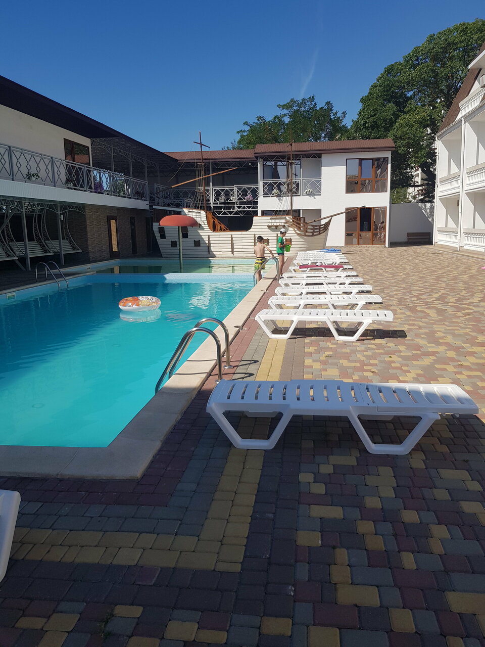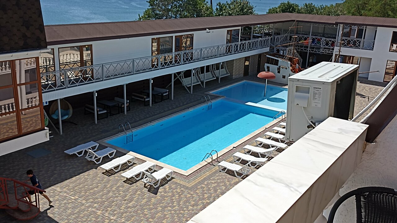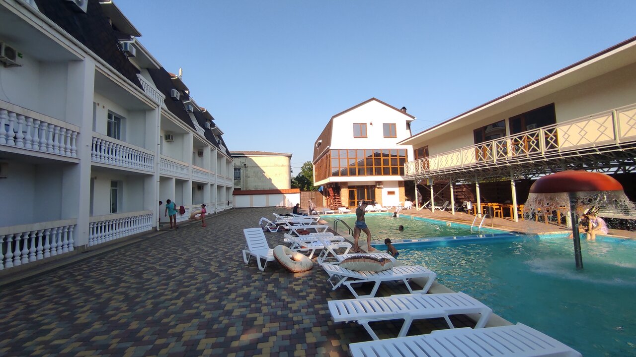 В прошлом году, мне кажется было получше. Хороший бассейн, главная замануха для гостей. Всегда вокруг него сидит лежит отдыхающий люд) употребляет продукты местных виноделов и пивоваров. Обычный ненавязчивый южный сервис. В номере есть все необходимое. Завтраки раньше, однозначно были лучше. В этом году непонятно, ощущение что кормят остатками из какого то ресторана, какой то привкус несвежести у блюд. Фруктов мало, выпечка только своя, в небольшом количестве. Всегда каша, омлет, что то мясное. Две отличные кофемашины. Людей в этом году поменьше, нет проблем с парковкой . Попытки организации досуга у детей , есть аниматоры, однозначно стараются, просто в силу юности не хватает им опыта. Твердое -Хорошо .