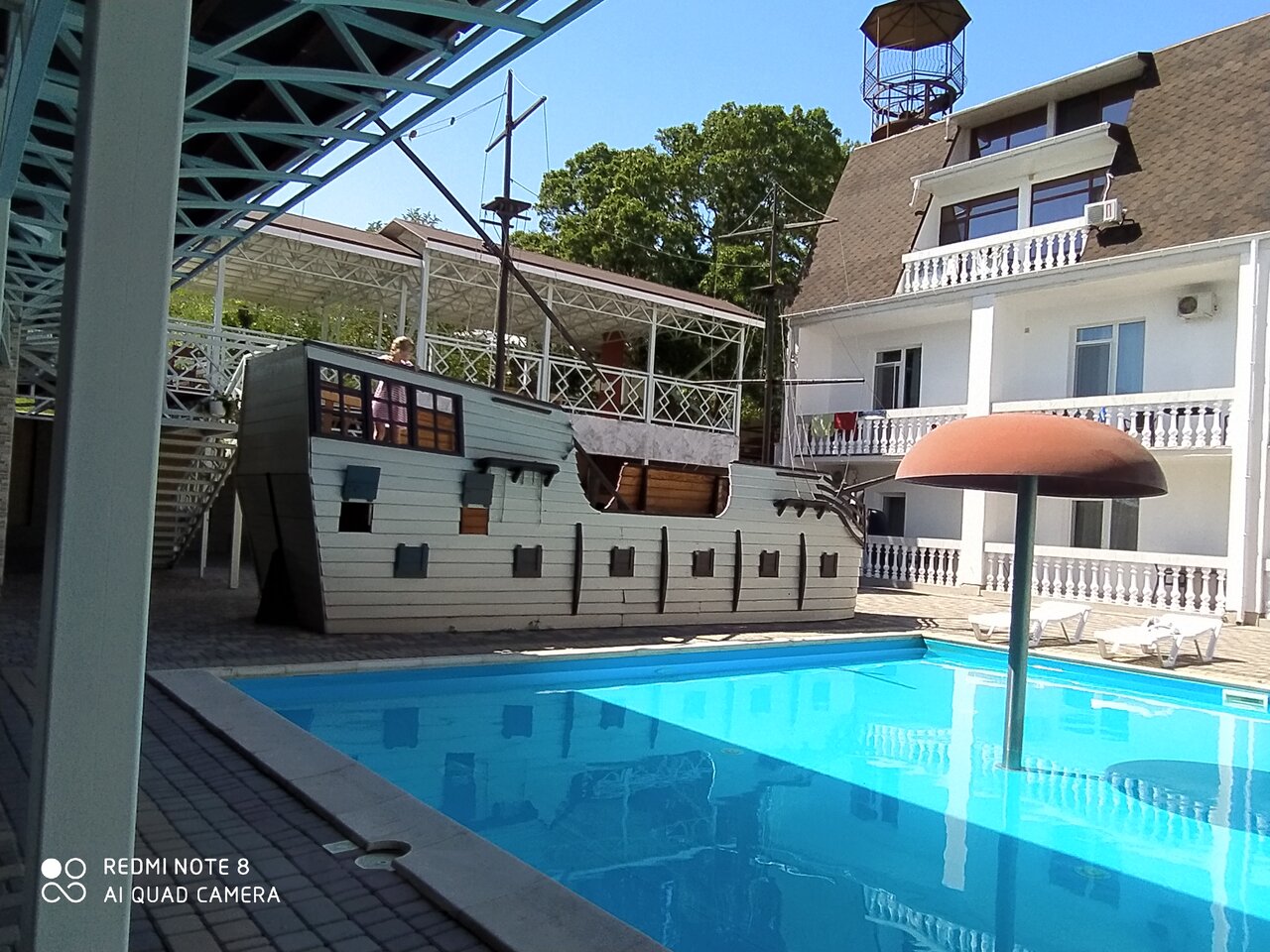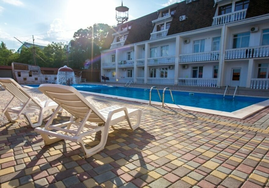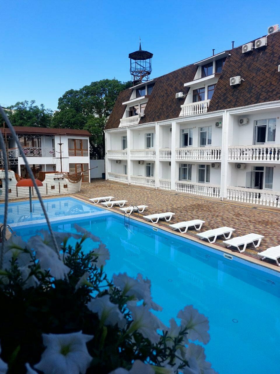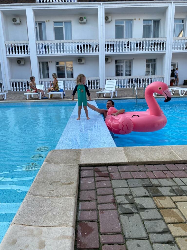 В прошлом году, мне кажется было получше. Хороший бассейн, главная замануха для гостей. Всегда вокруг него сидит лежит отдыхающий люд) употребляет продукты местных виноделов и пивоваров. Обычный ненавязчивый южный сервис. В номере есть все необходимое. Завтраки раньше, однозначно были лучше. В этом году непонятно, ощущение что кормят остатками из какого то ресторана, какой то привкус несвежести у блюд. Фруктов мало, выпечка только своя, в небольшом количестве. Всегда каша, омлет, что то мясное. Две отличные кофемашины. Людей в этом году поменьше, нет проблем с парковкой . Попытки организации досуга у детей , есть аниматоры, однозначно стараются, просто в силу юности не хватает им опыта. Твердое -Хорошо .
