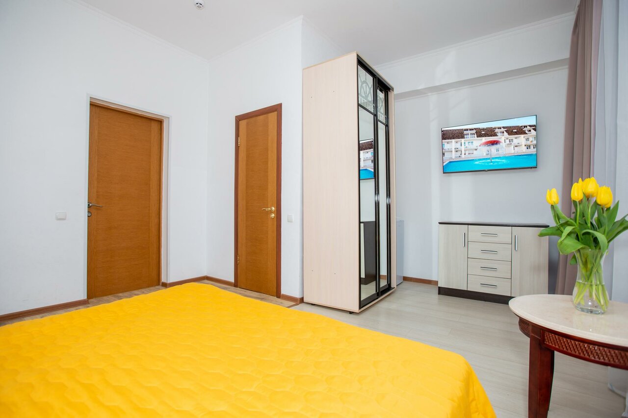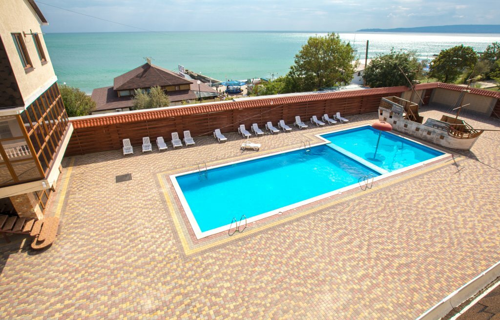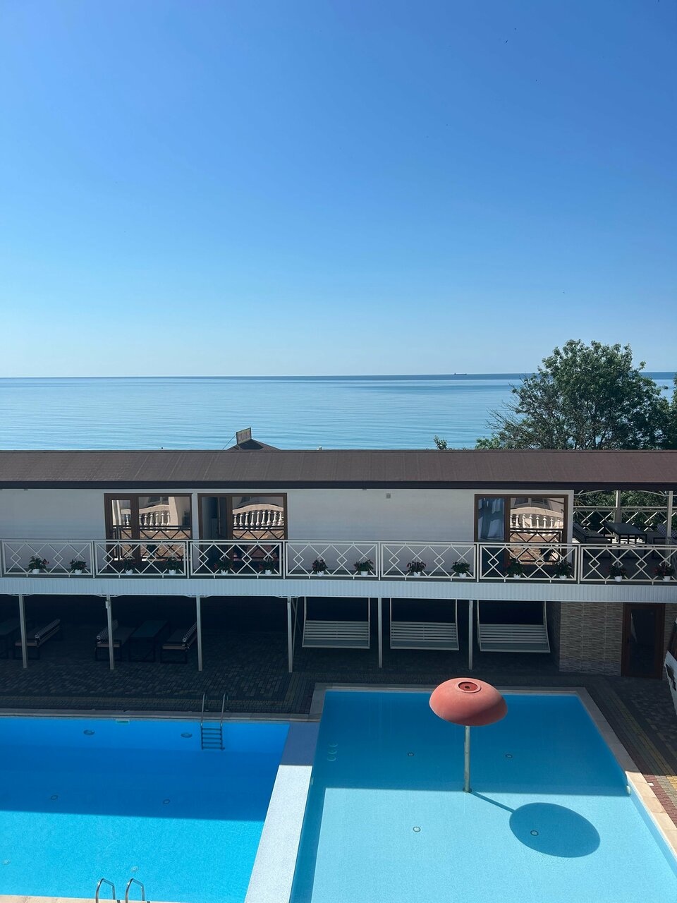 Хороший отель . Доступные цены, первая линия от моря , есть два бассейна , детский и взрослый , когда вода на море холодная всегда можно освежиться в бассейне . Завтрак шведский стол включен в оплату проживания , обед и ужин по желанию за отдельную плату. Большой выбор блюд и вкусно. Парковка на территории отеля . Есть спорт зал с тренажёрами , так же есть большая детская комната и аниматоры которые развлекут ваших детей . Персонал гостиницы всегда быстро решит поставленные задачи . Рекомендую )