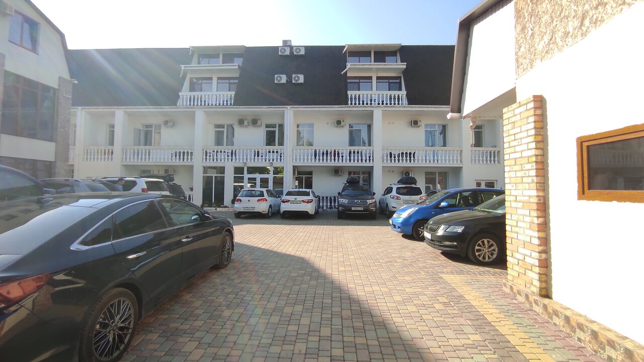 Очень понравилось. Персонал приветливый, обслуживание на уровне. Кухня без нареканий. Парковка есть, но места для всех постояльцев маловато. До моря рукой подать. Рекомендую.