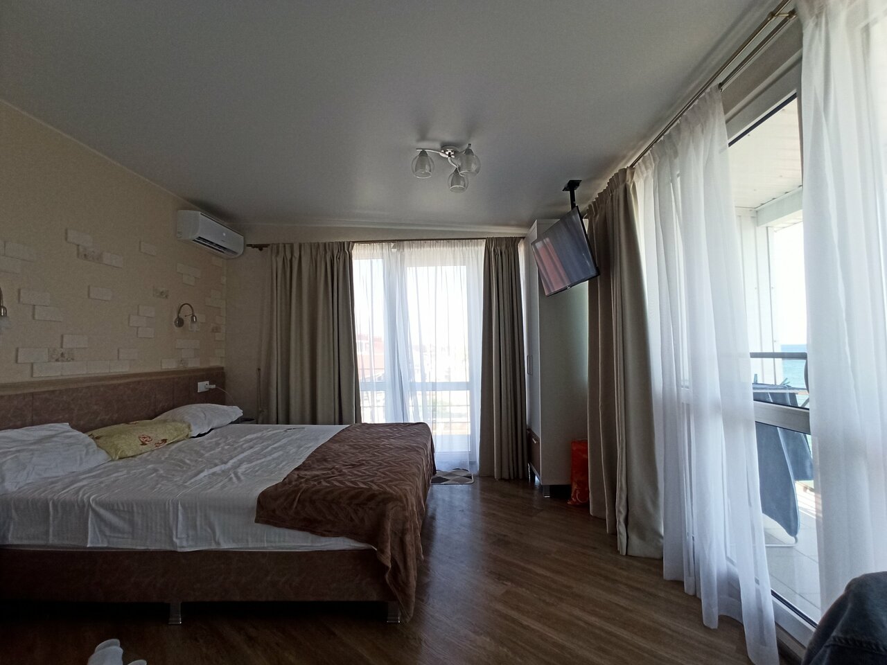 Хорошее место, порадовали цены, есть где поесть, есть парковка, свой выход на набережную и пляж, хороший вай фай, красивый вид с балкона))