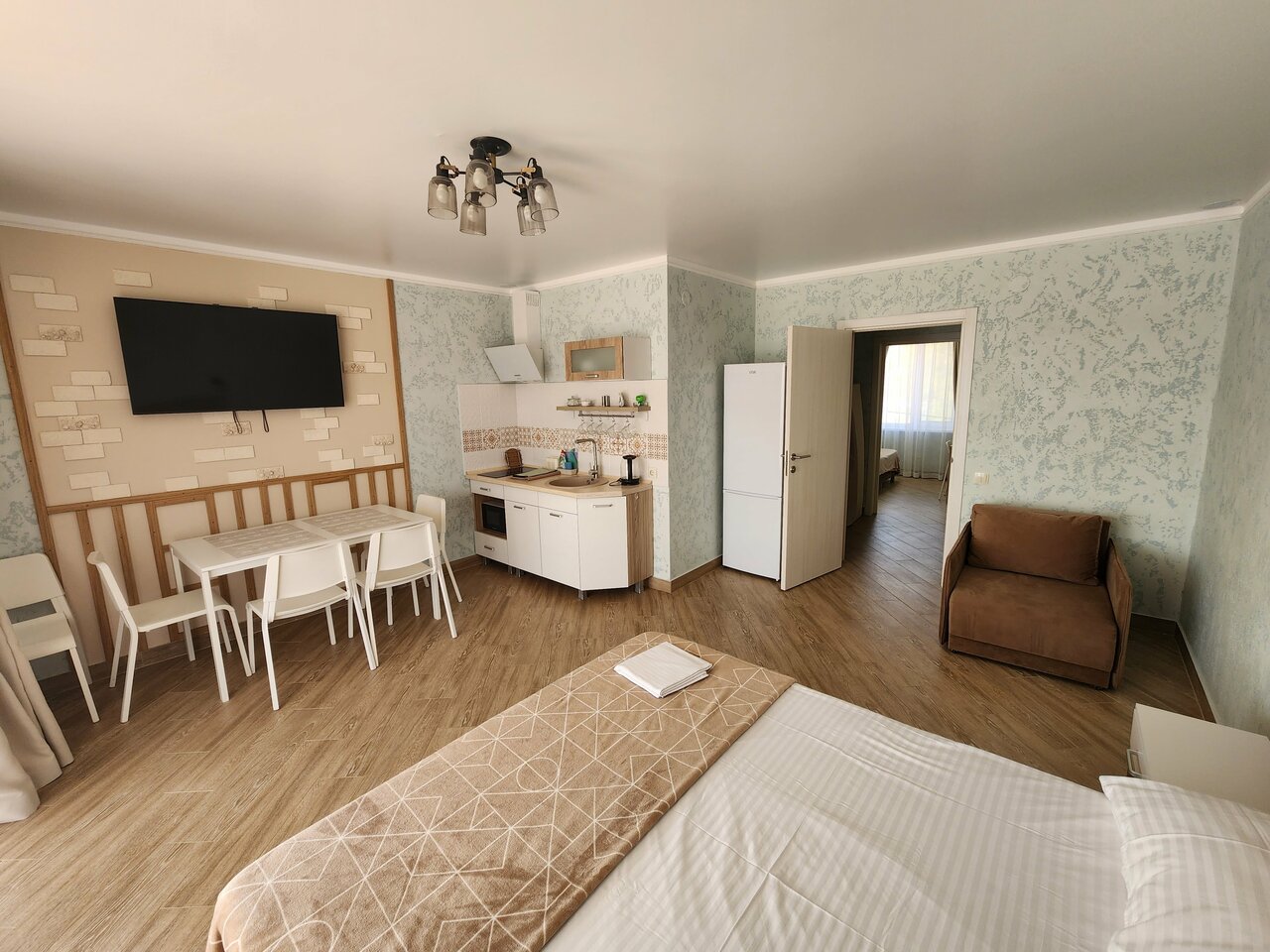 Останавливались на три дня в данном месте. Всё очень понравилось. В номере имеется всё необходимое для комфортного проживания. При желании можно самим готовить еду. Кухня полностью оборудована. Особенно покорил песчаный пляж и освежающее море которое находится в 5ти метрах от номера. Артур, открытый и доброжелательный человек, с которым легко и приятно общаться. На первом этаже есть кафе, вкусная еда и достаточно умеренные цены. Все очень понравилось, обязательно вернёмся ещё..))