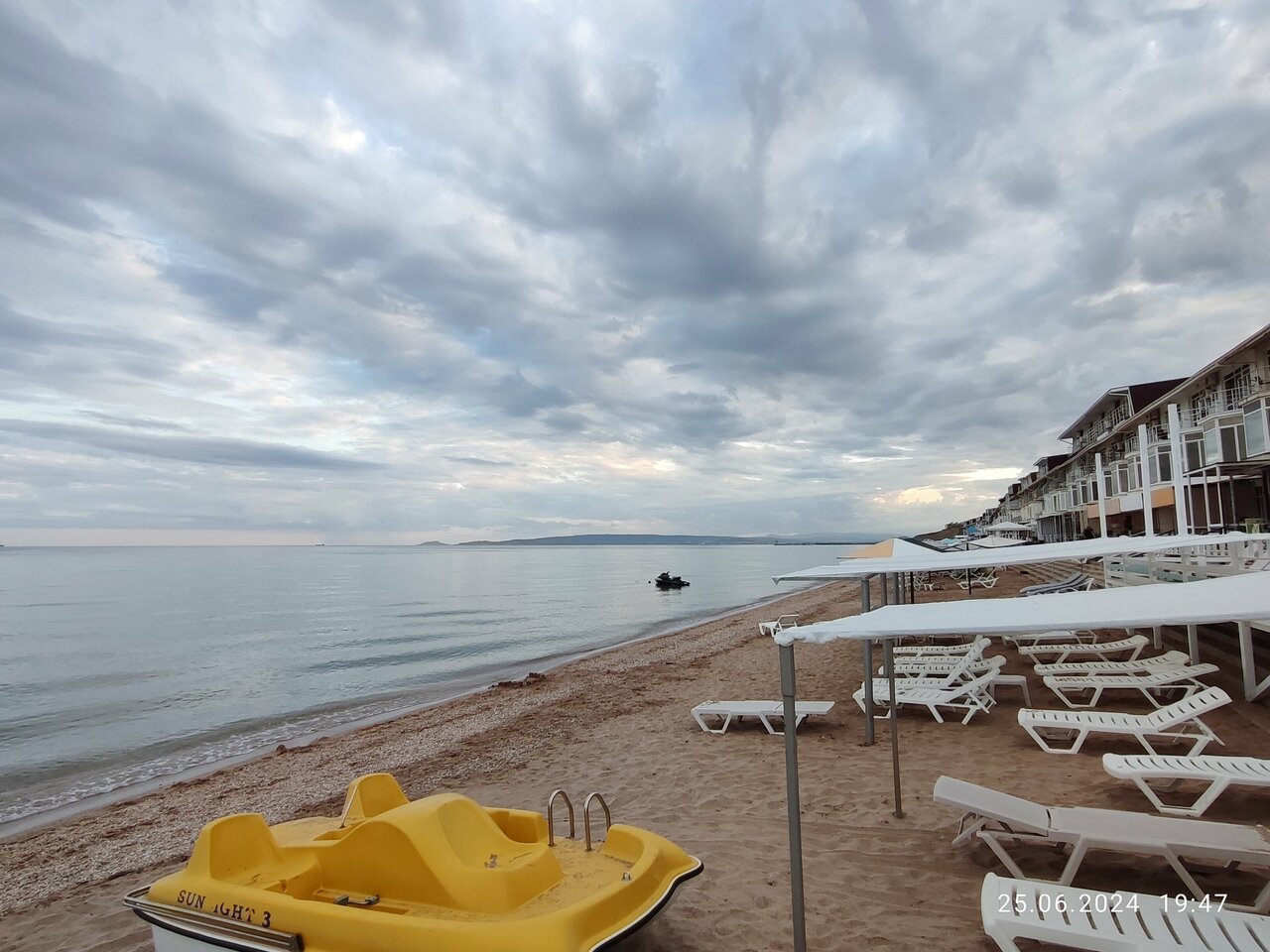 Отдыхали в начале июля, с двумя детьми. В нашем номере было всё, чтобы мы почувствовали себя как дома — чистое, белоснежное постельное бельё, стиральная машина, большой холодильник, плита, микроволновка, все приборы и посуда для приготовления пищи. На пляже всегда были свободные лежаки, море чистое, людей мало и это прекрасно. Кафе на первом этаже, готовят вкусно! Отдельный привет Евгению и Юлии, создающим классную атмосферу. Управляющий Артур всегда на связи. Это был прекрасный отпуск, до встречи в новом сезоне!