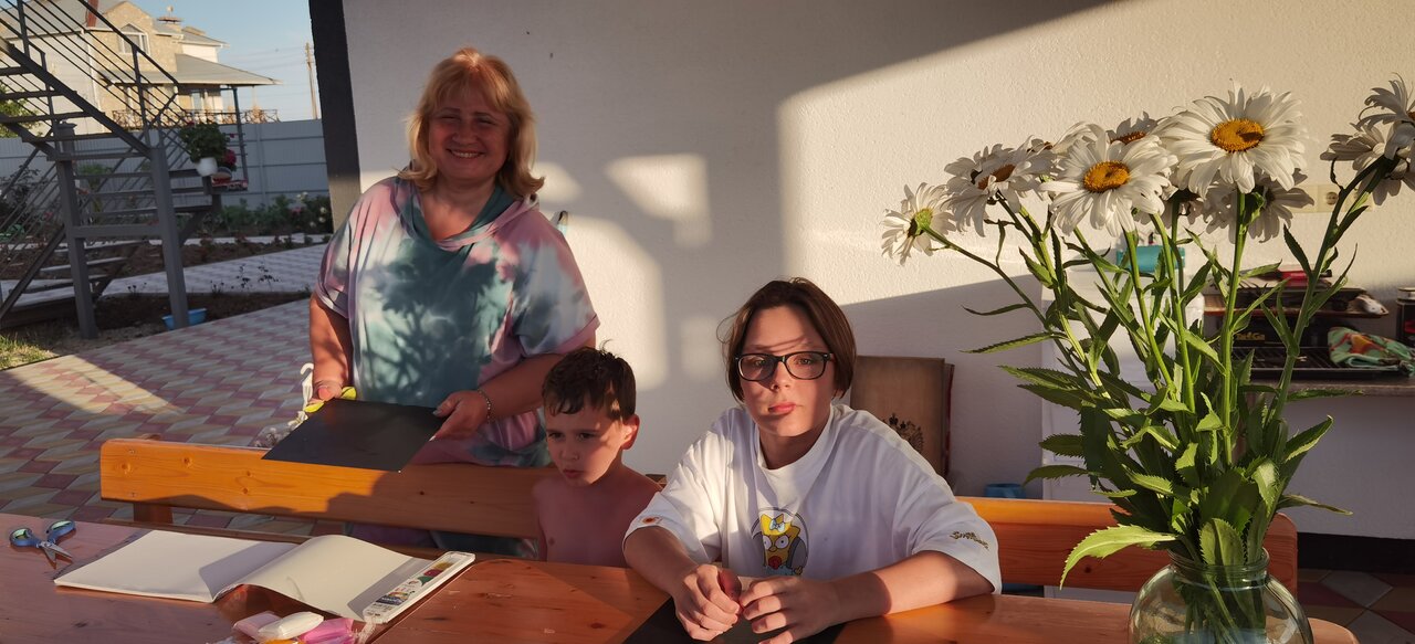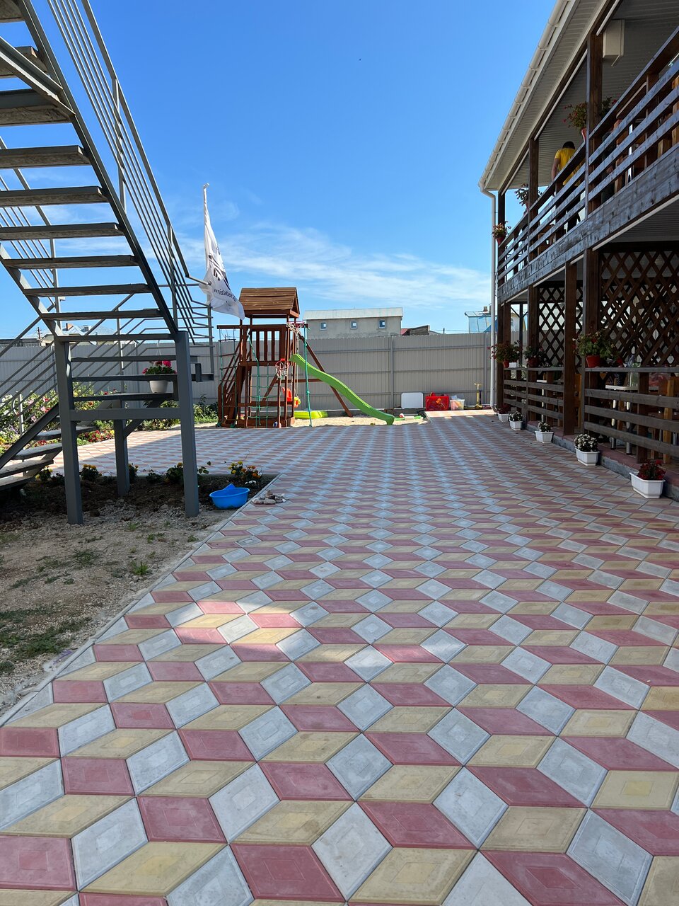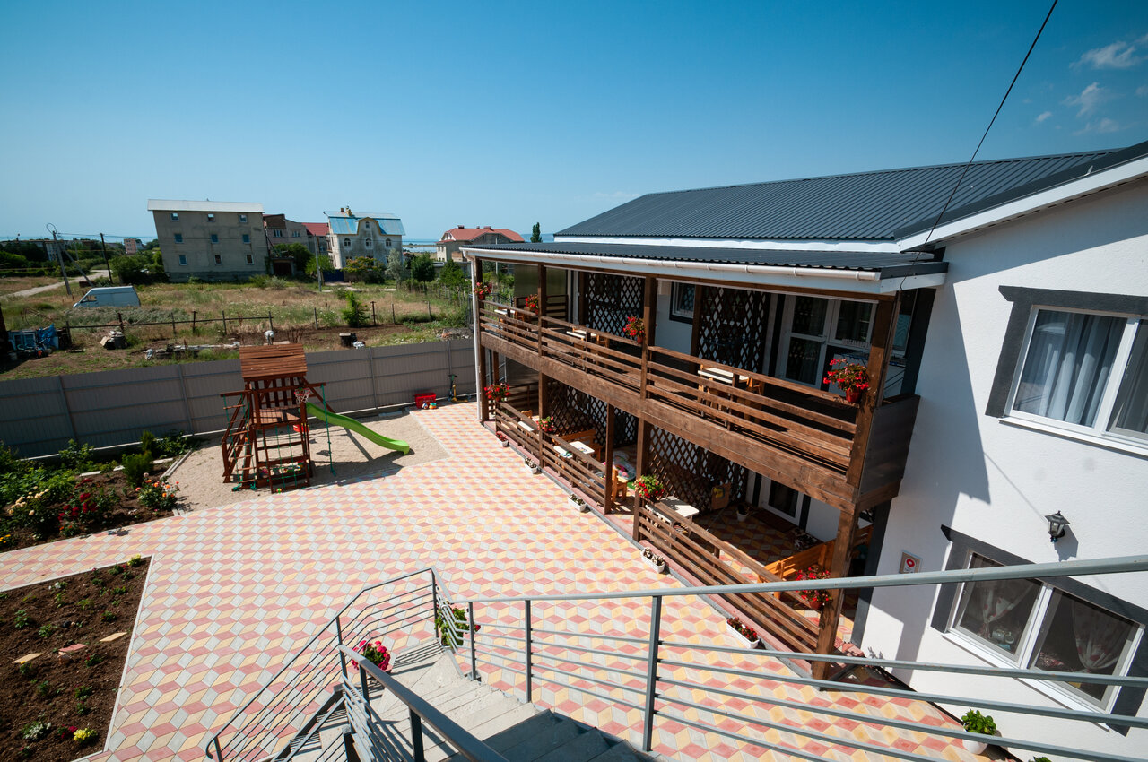 Потрясающий отель. Хозяйка как заботливая фея- всегда хлопочет чтобы всем было хорошо. Детям просто рай. Утром, пока родители крепко спят, дети выходят во двор и катаются на качелях, лепят куличики, катаются с горки, прыгают на батуте. В общем все для людей. Море рядом, пляж классный ракушечный. В начале море мелкое. Есть лежаки и развлечения. И, конечно же, зачем ехать жалеко от моста если есть пгт Приморский Идеальное место для семейного отдыха П.С. Для мам: сковородки и кастрюли идеальны.