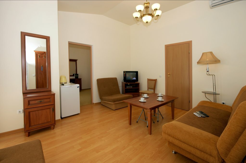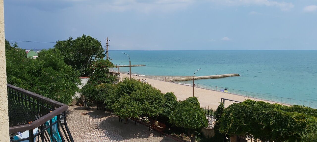 Отличное место для отдыха. Два балкона с видом на море. Уютный номер с двумя изолированными комнатами. Удобные и комфортные спальные места. Чистота в отеле и обстановка на каждом этаже. Интерьер, начиная от стойки регистрации, создают уютную домашнюю обстановку. Вкуснющая домашняя кухня. Удобная парковка с выездом на Керченское шоссе. Все понравилось!