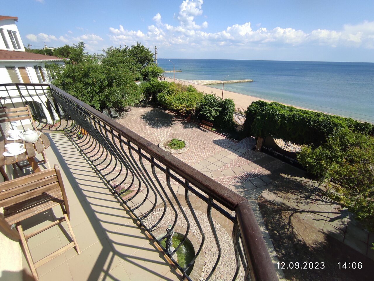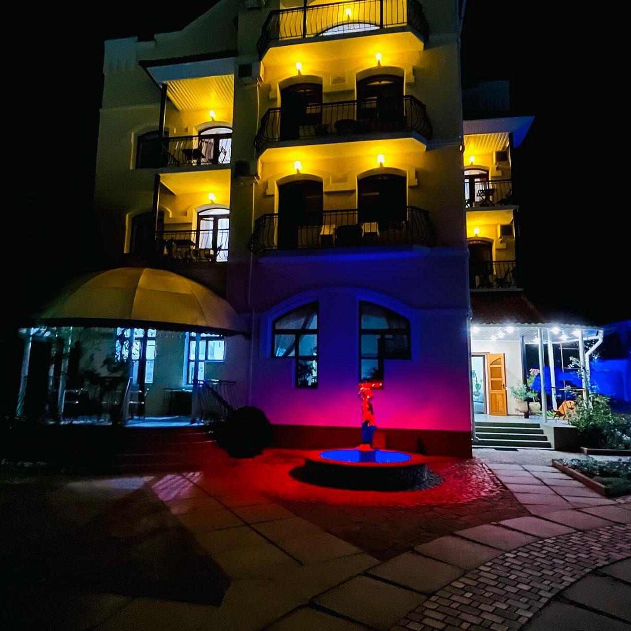 Отличная гостиница на первой линии,очень красиво оформлен двор,вечером включается подсветка.Номера с новой сантехника,очень чисто,в номере есть чайник.На балконе можно сидеть и пить чай,любуясь морем. Персонал ненавязчиво,доброжелательный.